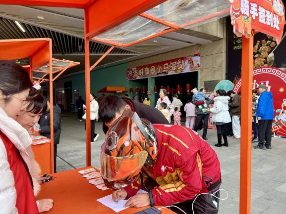 活动现场,专为骑手设置的抽签区人气最旺——“爆单签”“平安签”“不迷路签”“准时达签”,四款定制祝福签,每一张都是社区对“奔跑者”们的贴心祝愿。待驿站正式开业时,骑手们还能凭此签兑换专属礼品。