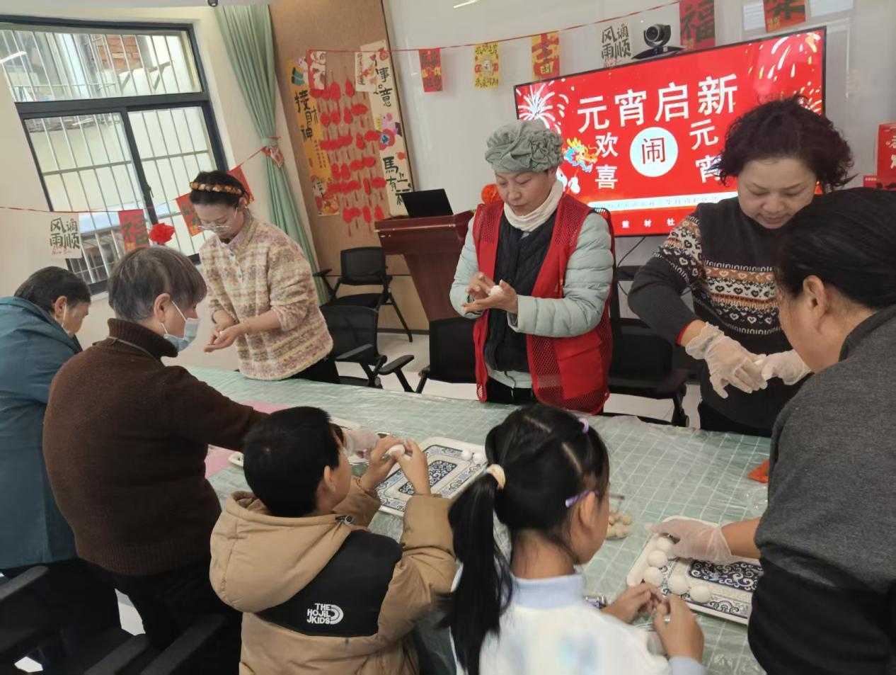 活动现场张灯结彩、喜庆祥和,处处暖意融融、年味浓郁。社区工作人员提前备好糯米粉、黑芝麻、豆沙等新鲜食材,大家围桌而坐,揉面、包馅、搓圆,动作娴熟又充满乐趣。老少携手、邻里互助,新手虚心请教、老手耐心指导,一颗颗圆润饱满的汤圆陆续摆满托盘,香甜气息与欢声笑语交织在一起。悠扬的《好运来》循环回荡,喜庆旋律烘托出浓浓的节日氛围,大家边做边聊、话家常、送祝福,现场温馨和睦、热闹非凡。