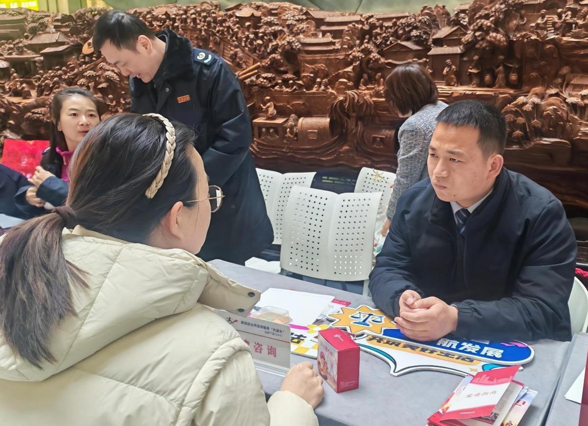 3月3日,武昌区公共法律服务“大篷车”再次来到长城汇大厦,参与由水果湖街道主办的“政务‘元’气送暖,楼宇喜‘宵’颜开”主题活动。此次活动,武昌区司法局联合区发改局、区教育局、区住更局、区税务局等部门,共同搭建便民惠民服务平台,精准对接楼宇企业、职工及居民需求,送上政策咨询、法治宣传与元宵关爱服务,让法治温度与节日暖意双向奔赴。