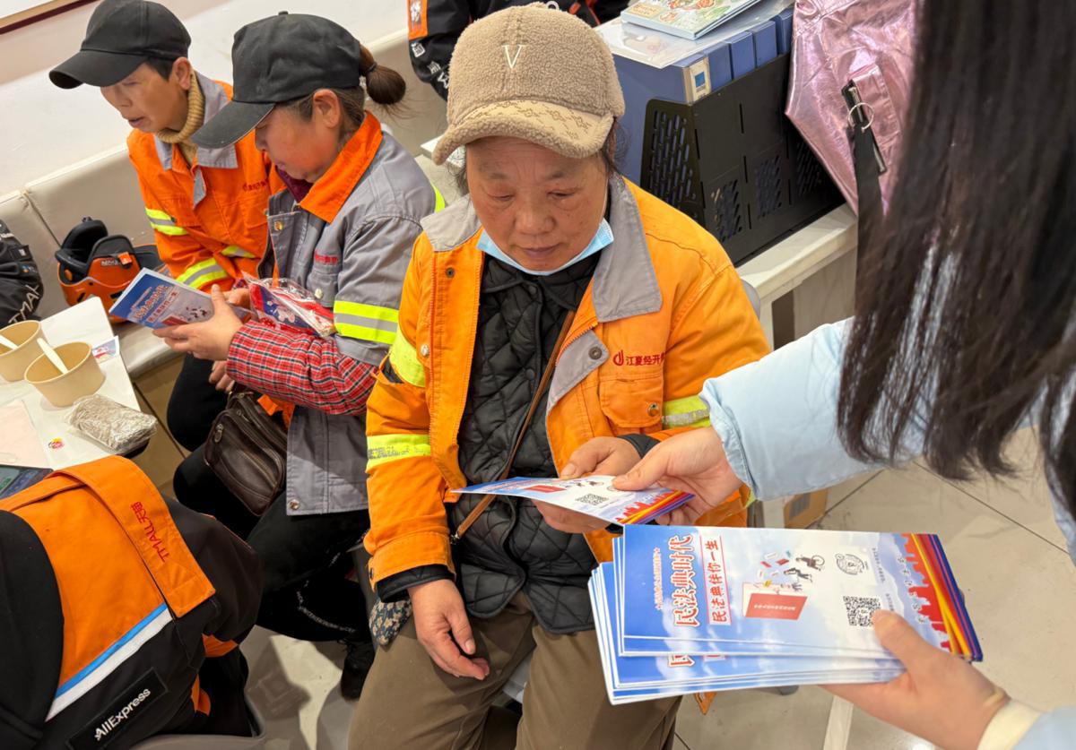 活动现场,北京观韬(武汉)律师事务所的杨昭颖律师结合新就业形态劳动者工作实际,用通俗易懂的案例详细讲解劳动合同签订、工伤保险待遇、工资支付保障等热点问题,引导大家知法、懂法、用法,学会运用法律武器维护自身合法权益。司法所工作人员发放《中华人民共和国民法典》宣传折页,现场解答劳动纠纷、法律援助申请等问题。“以前遇到纠纷不知道找谁,今天听了讲解,还知道了如何申请法律援助,心里踏实多了。”一位外卖小哥感慨道。