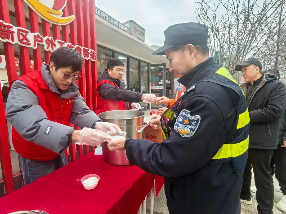 工贸社区携手湖北祈盛置业有限公司,在长江新区户外工作者驿站开展“浓情元宵·温暖同行”活动,将汤圆递给环卫工人、快递员、外卖骑手等一线劳动者,感谢他们的辛勤付出。