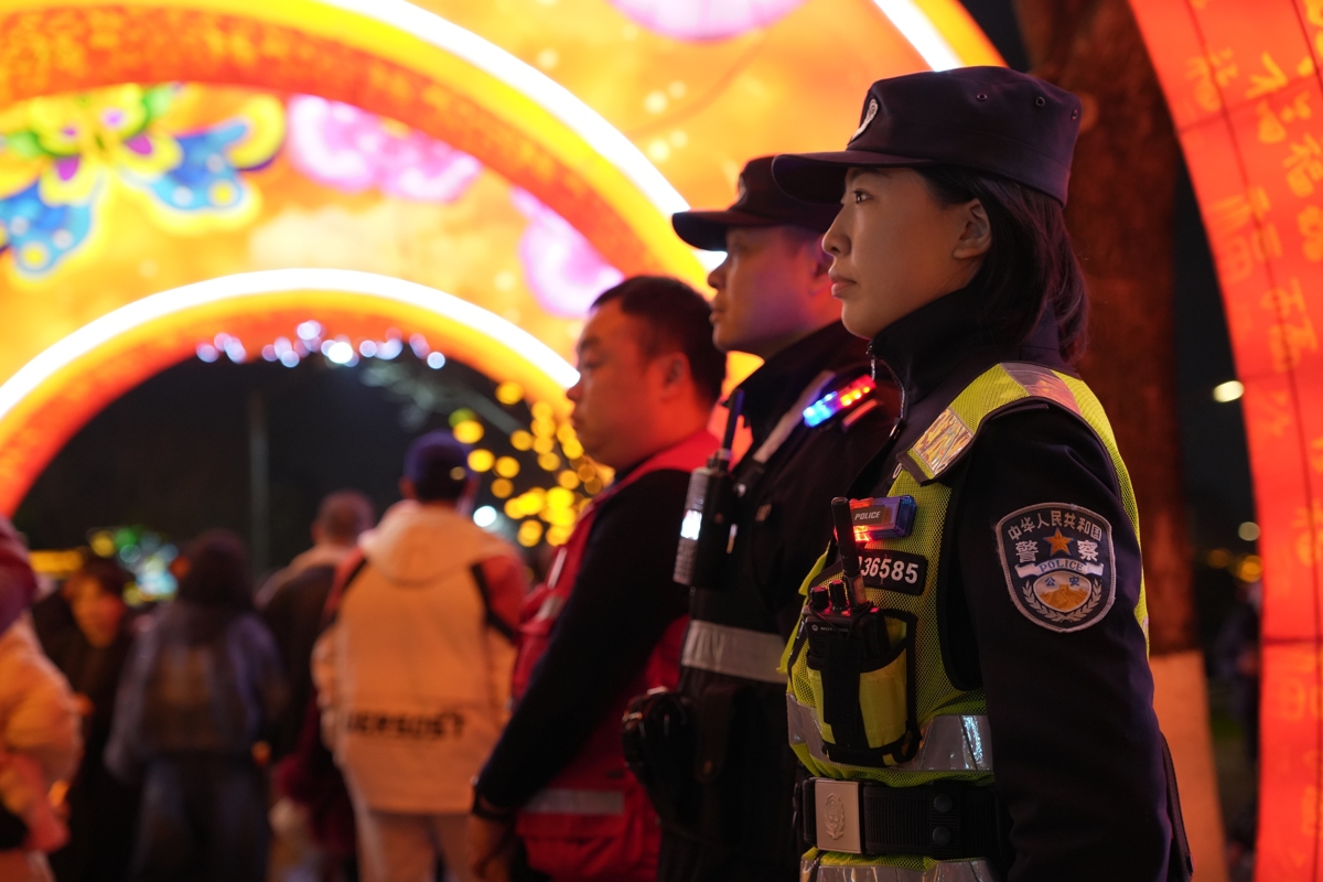 3月3日,马年元宵佳节,江城武汉张灯结彩、游人如织,各大景区商圈的光影秀、花灯会、民俗展演等活动精彩纷呈。武汉市公安局广大民警辅警坚守一线,全力守护元宵佳节期间全市社会治安大局平稳有序。