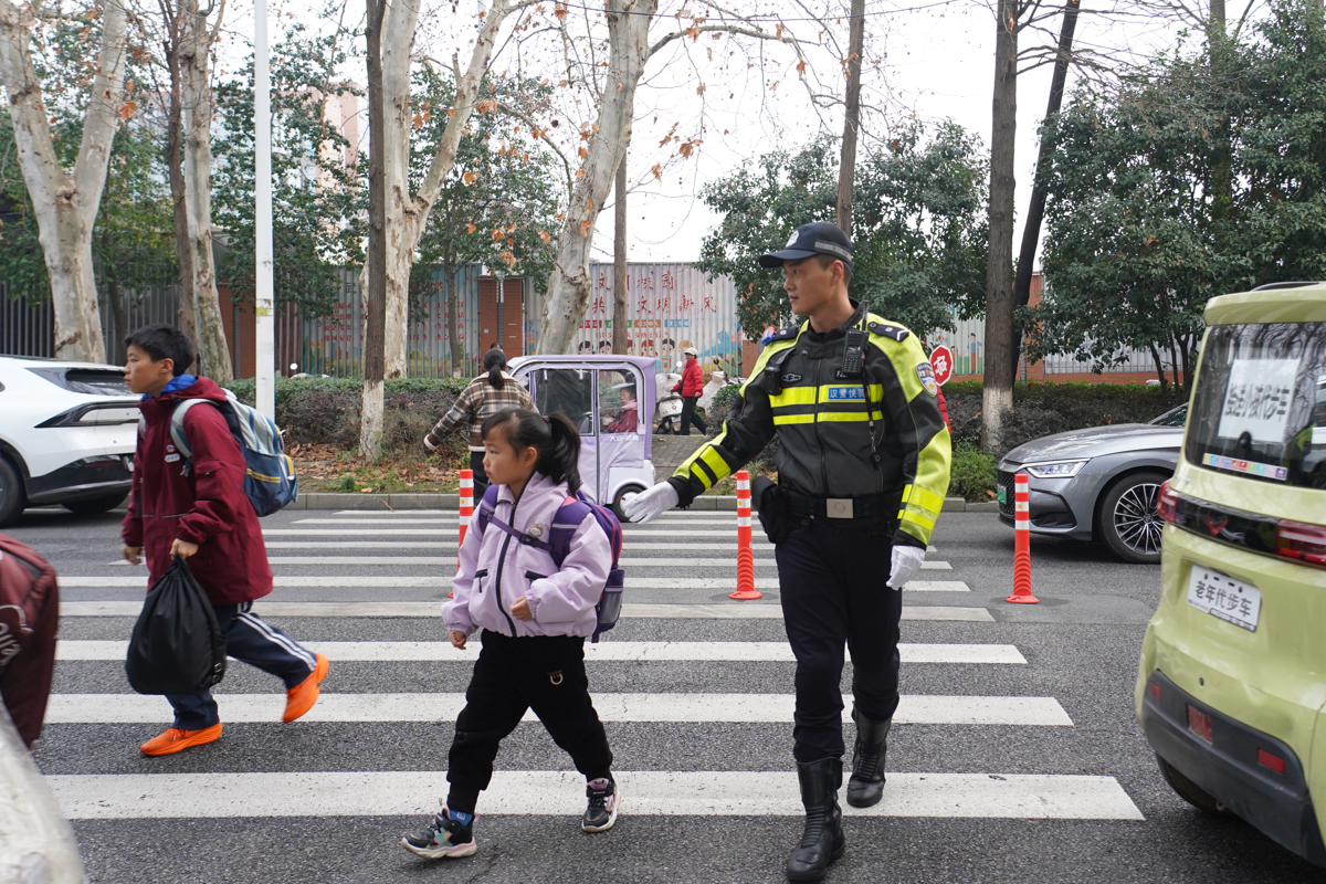 “欢迎同学们!”3月4日清晨7时20分,武汉市公安局东西湖区分局金银湖街派出所“00后”女民警刘芳婷带领辅警队员、恋湖社区志愿服务队准时来到金银湖小学,以青春之名守护校园平安。她细致开展开学护校工作,全力维护校园周边秩序,为师生返校筑牢安全屏障。