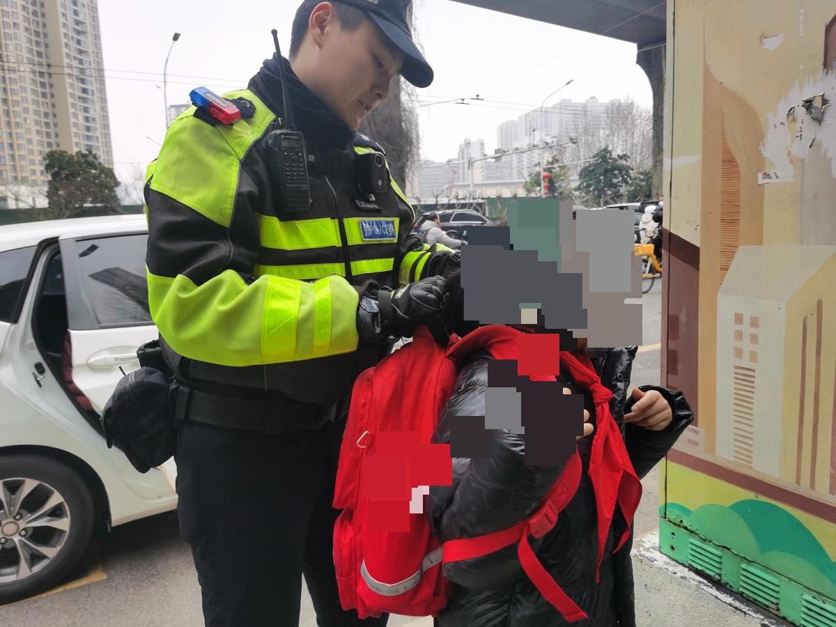 在水厂路小学门口执勤的硚口交警吴鸿浩、叶帆,遇到几位“小迷糊”还没从假期模式切换出来,有的在车上睡着了,有的丢三落四忘了东西。眼看上课时间就要到了,两位交警一手拎着书包,一手拉着孩子,一路小跑送到学校门口,来来回回跑了几趟。他俩都还没成家,同事都笑着说他们:“提前开始操心孩子的事了。”