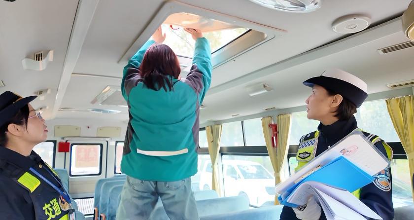 “师傅,新学期接送孩子,车辆的安全设施、驾驶资质都要再核对一遍,可不能有半点松懈。”检查现场,民警刘敏一边查看灭火器、安全锤摆放、急救物品与逃生门启闭情况,一边与校车驾驶人交流。“您放心,我们每天出车前都会绕车检查,安全带、应急设备都齐全有效,驾驶资格也按时审验,绝对依规运营。”校车驾驶人现场回应。民警随即叮嘱:“校车承载的是孩子的安全,一定要严格按审批线路、核定站点行驶,坚决不超员、不超速,随车照管员要全程看护,把安全责任落到每一个细节。”