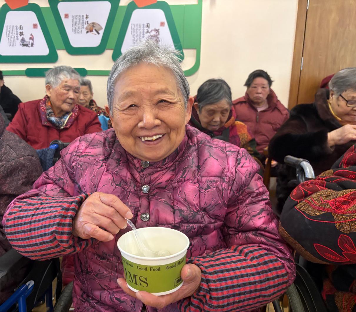 除了精彩绝伦的歌舞表演,现场还精心设置了猜灯谜、品汤圆等充满民俗气息的互动环节,让长者们在欢乐中感受传统节日的魅力。工作人员提前精心准备了一碗碗热气腾腾、软糯香甜的汤圆,小心翼翼地送到每一位长者手中,咬一口,甜糯入味,暖到心底,不仅驱散了春日的微凉,更传递着社区的关怀与温暖。趣味灯谜区更是热闹非凡,一张张写满灯谜的彩纸悬挂整齐,涵盖民俗、成语、生活常识等多个类别,长者们围坐在一起,凝神思索、互相提示、彼此探讨,在欢声笑语中破解谜题,既锻炼了思维,又收获了乐趣,沉浸式感受元宵民俗的独特魅力。