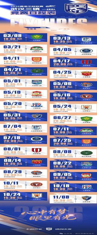 3月8日,2026中国足球超级联赛武汉三镇队赛程正式启动,首轮将在武汉体育中心主场迎战北京国安,一场针尖对麦芒的较量即将上演。全年15场主场赛事落地武汉体育中心,精彩持续在线。