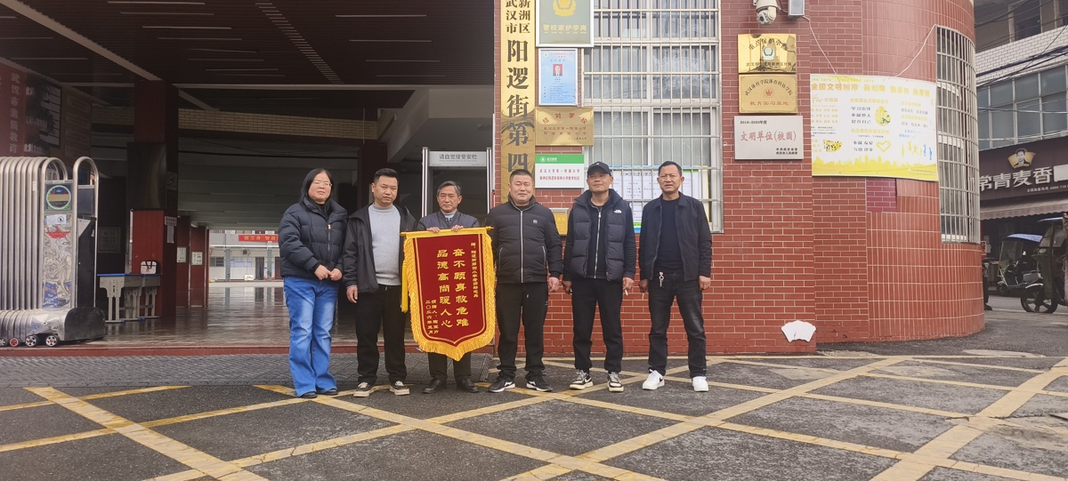 近日,武汉市新洲区双柳街居民陶亚力将一面印有“奋不顾身救危难,品德高尚暖人心”的锦旗,送到长江新区阳逻街第四小学,专程感谢该校教师郑志兵的救命之恩。