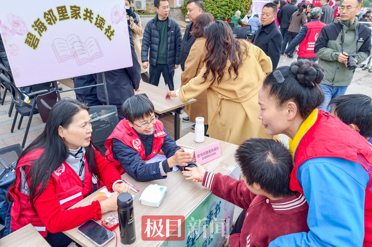 当天上午,新闻记者在现场看到,碧海社区居委会门前的小广场上,设置有垃圾分类宣传、义务理发、健康检查、法制与政策宣传、手机贴膜、免费磨刀、免费打扁等十余项便民服务摊位,每个摊位前人头攒动,热闹非凡。志愿者们还进行红色故事宣讲,组织学雷锋知识竞猜,开展变废为宝生活妙招教学与自闭症儿童手工作品义卖,丰富活动内容。
