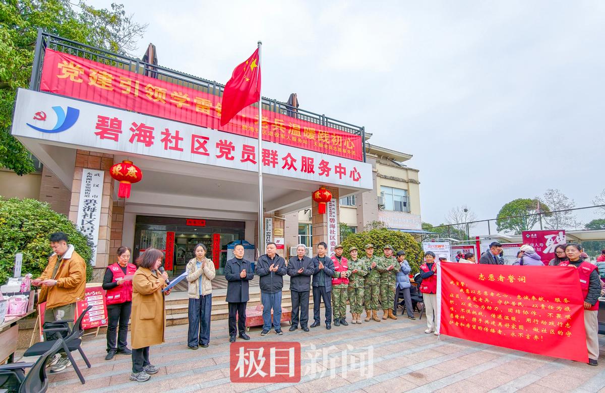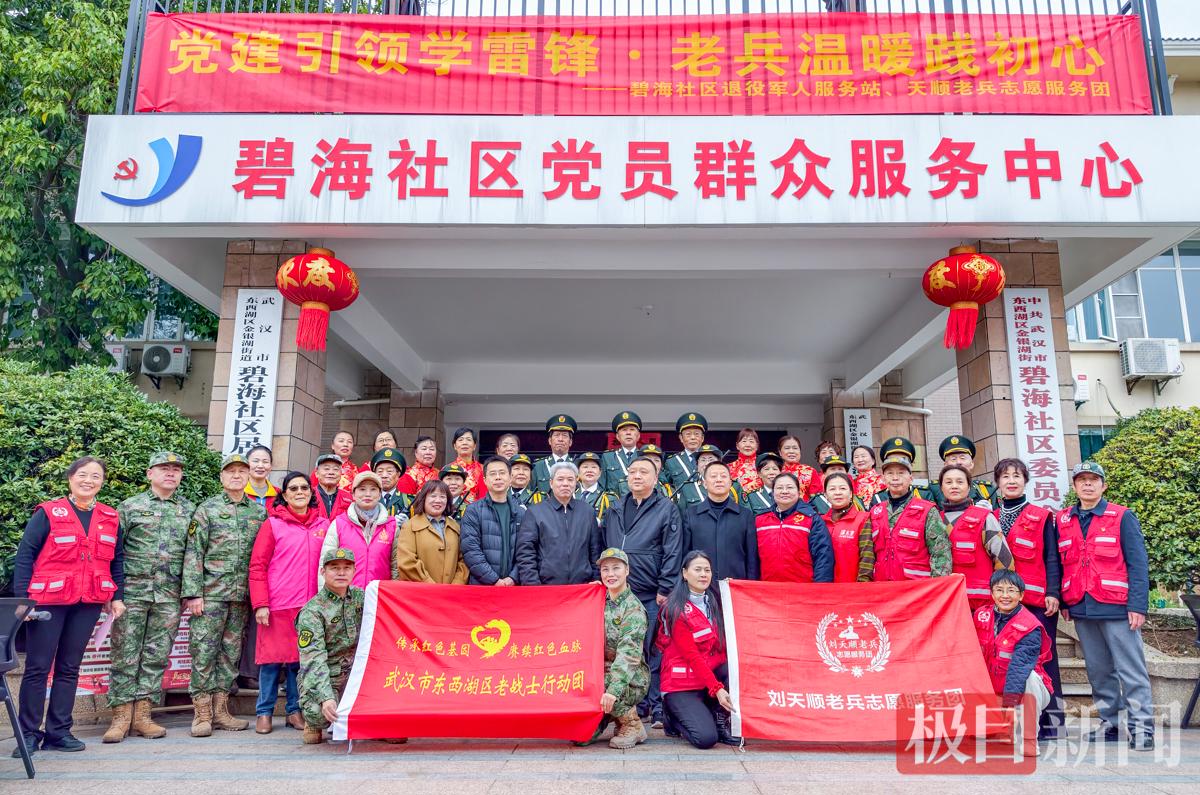 3月5日是学雷锋纪念日。当天上午,武汉市东西湖区金银湖街道碧海社区门前暖意融融。由东西湖区退役军人事务局主办,金银湖街道、碧海社区退役军人服务站承办,天顺老兵志愿服务团协办的“党建引领学雷锋·老兵温暖践初心”志愿服务活动暖心举行。