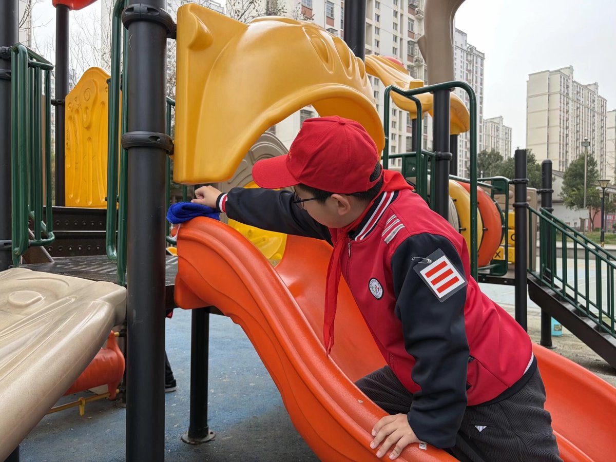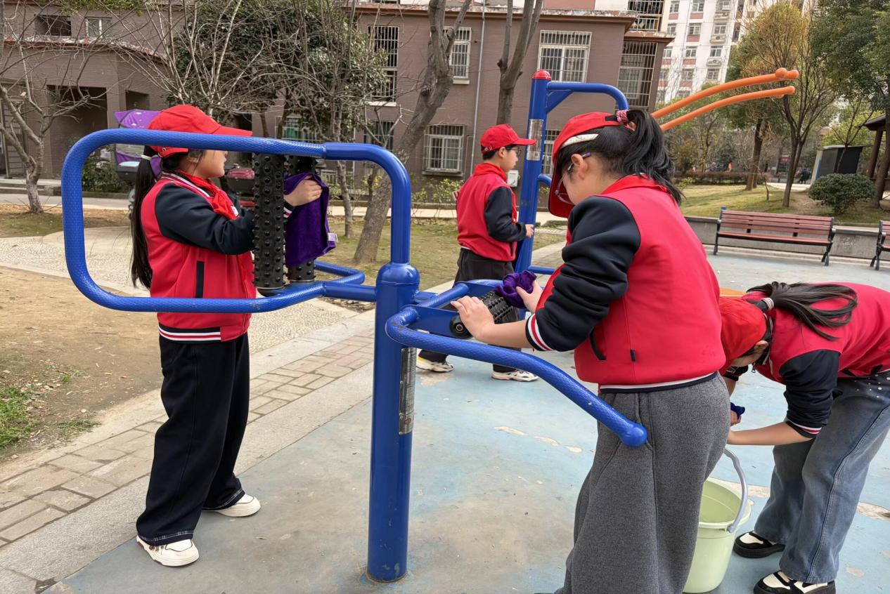 在社区工作人员和党员志愿者的带领下,大家分组行动,干劲十足地投入到清洁劳动中。小小志愿者们成为了春日里一道亮丽的风景线。他们在老师的指导下,手持抹布、水桶等工具,认真擦拭着游乐场的滑梯、文化长廊的座椅以及每一处健身器材,不放过任何一个角落。党员志愿者们带头清理外围绿化带中的塑料袋、枯枝杂草等杂物,并对单元楼门口违规停放的电动车进行有序摆放和劝导。