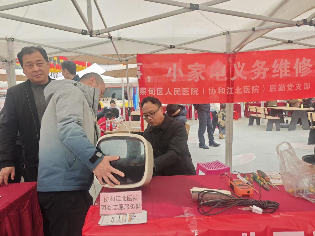 在健康生活区,蔡甸区中医院医护人员为居民提供刮痧、推拿、基础健康检测等服务,摊位前有序排起长队。协和江北医院团委志愿服务队的5名后勤骨干化身“维修能手”,现场为居民检修洗衣机、电风扇等小家电,精湛手艺赢得连连称赞。“师傅手艺真好,这下电扇又能用好几年,真是省钱又省心!”抱着修好电扇的李阿姨笑容满面。