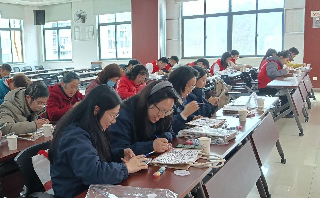 在“志愿‘她’力量,手绘绽芳华”手提包手工制作环节,现场嘉宾、志愿者与一线女性工作者齐聚一堂,在手提包上精心创作。一笔一画间,勾勒出对美好生活的期许,凝聚着对一线巾帼工作者的敬意,为妇女节送上最温暖的祝福。