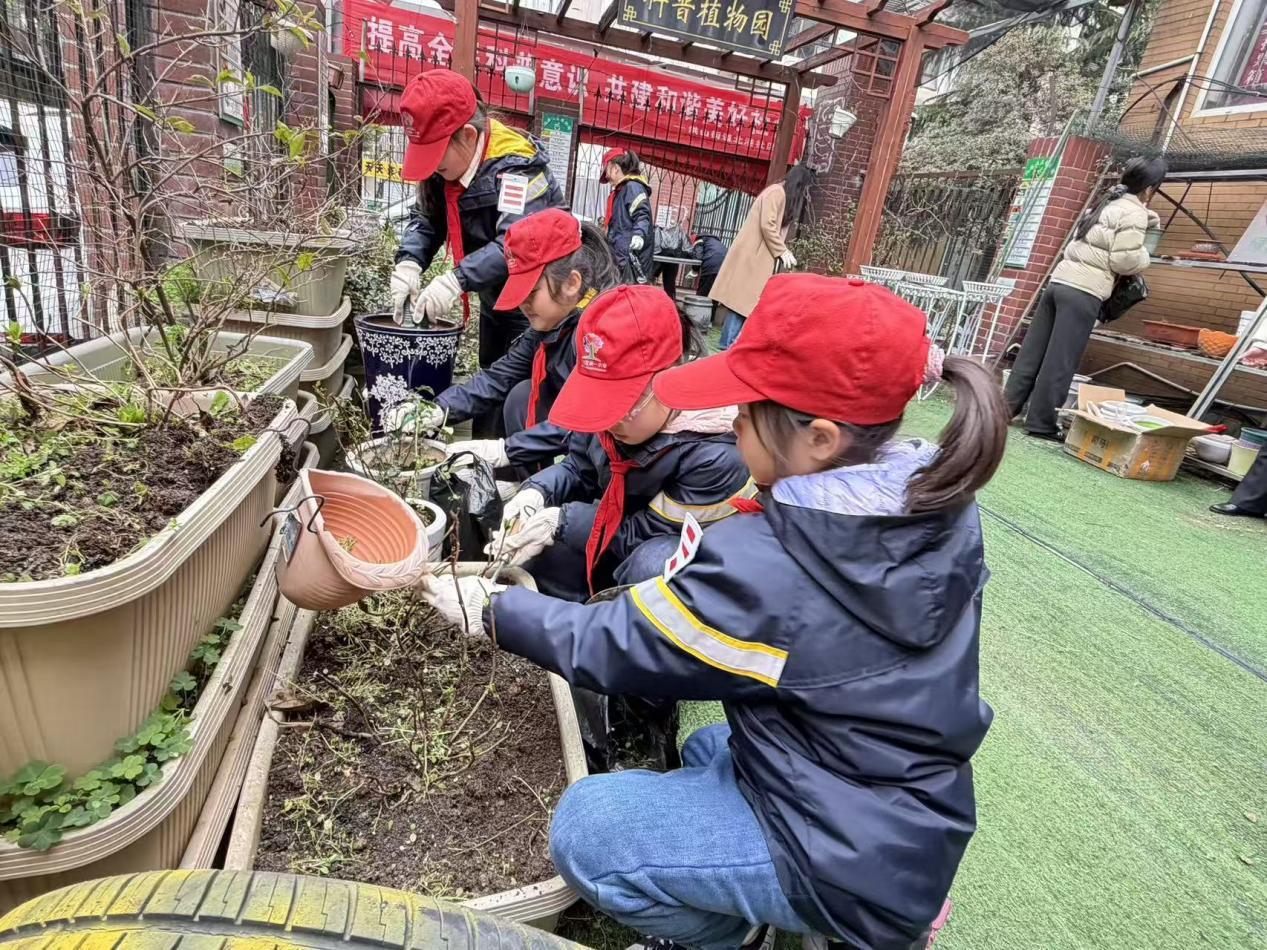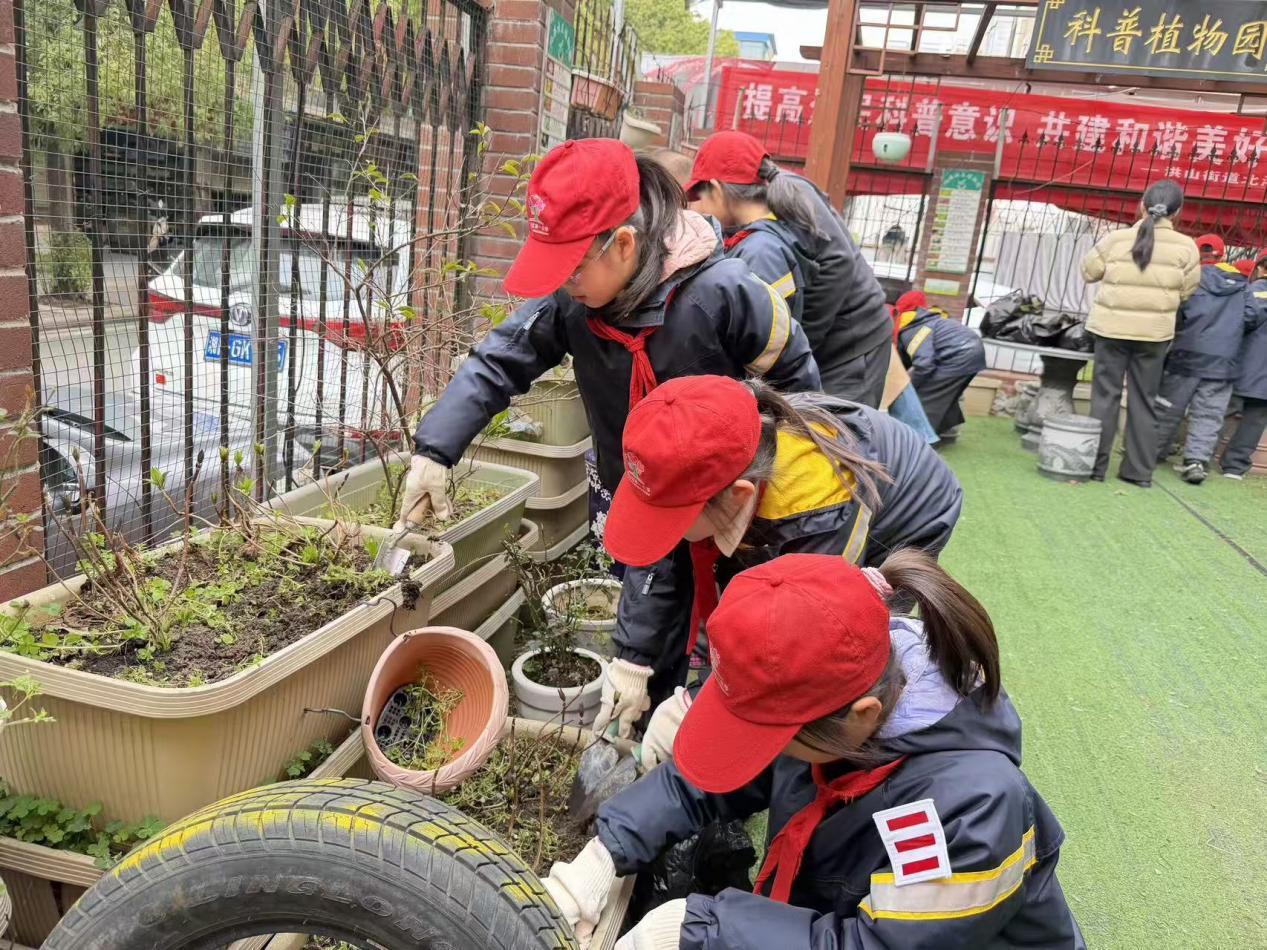 在学习与参观结束后,同学们化身小小志愿者,前往社区科普植物园开展志愿服务实践。大家热情高涨、分工协作,认真整理园区环境、仔细铲除杂草、清理园内杂物,以饱满的精神状态投入到劳动中,用实际行动践行雷锋精神,展现出洪山一小学生吃苦耐劳、团结协作、乐于奉献的优良风貌。