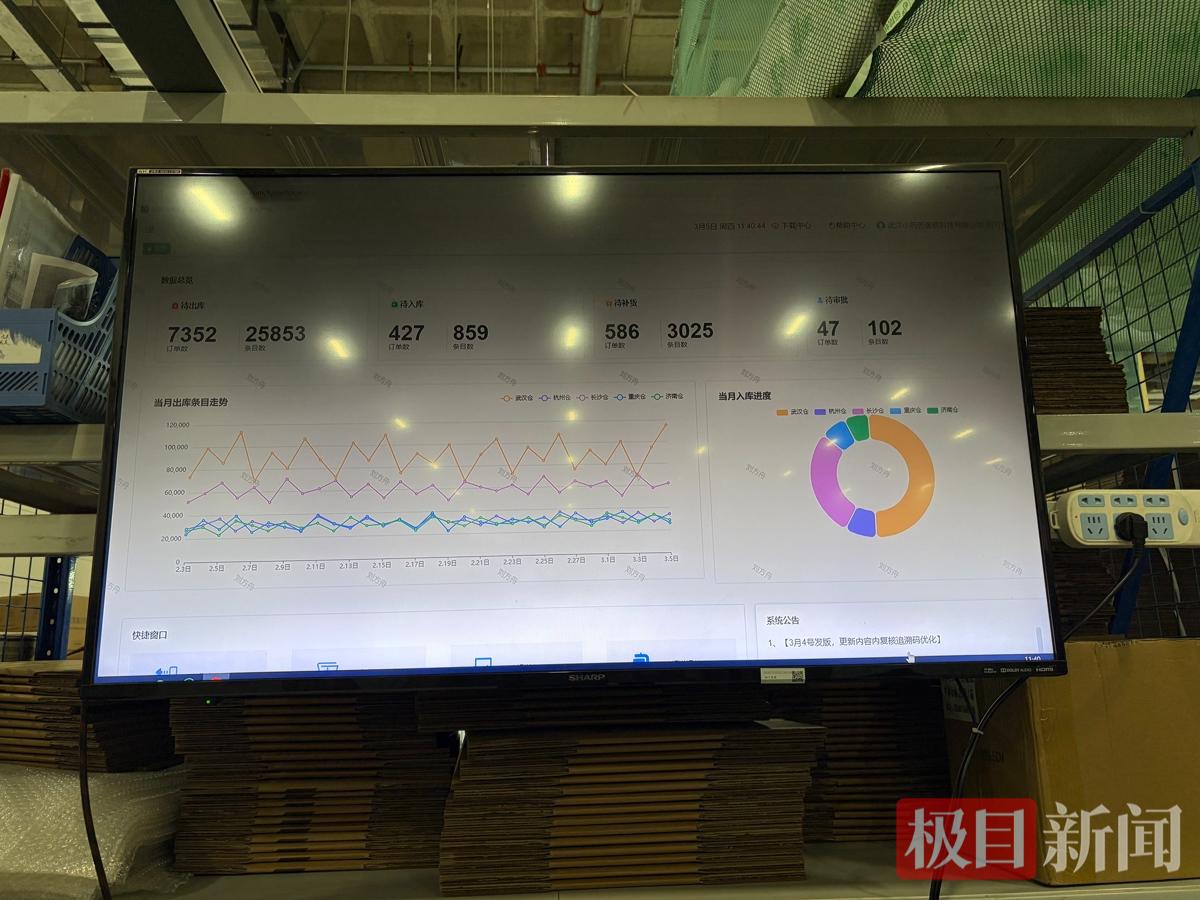 “这是我们的实时数据大屏。”刘俊指着屏幕上不断跳动的数字说,目前有7352个订单等待出库,武汉仓的入库量占到了全部仓库总量的近三成。他表示:“这些订单不仅覆盖线下药店,也包括即时发货的线上个人用户,我们会根据订单属性快速匹配最优物流渠道。”