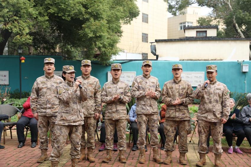 演出接近尾声时,在老人们的热烈邀请下,来自陆军工程大学军械士官学校的官兵们整齐列队走上舞台,应大家的要求合唱了《打靶归来》和《强军战歌》。铿锵有力的歌声,昂扬向上的精神风貌,瞬间点燃了全场的热情,不少老人也跟着节奏哼唱起来,仿佛回到了那段激情燃烧的岁月。歌声、笑声、掌声交织在一起,奏响了一首动人的春日敬老协奏曲。