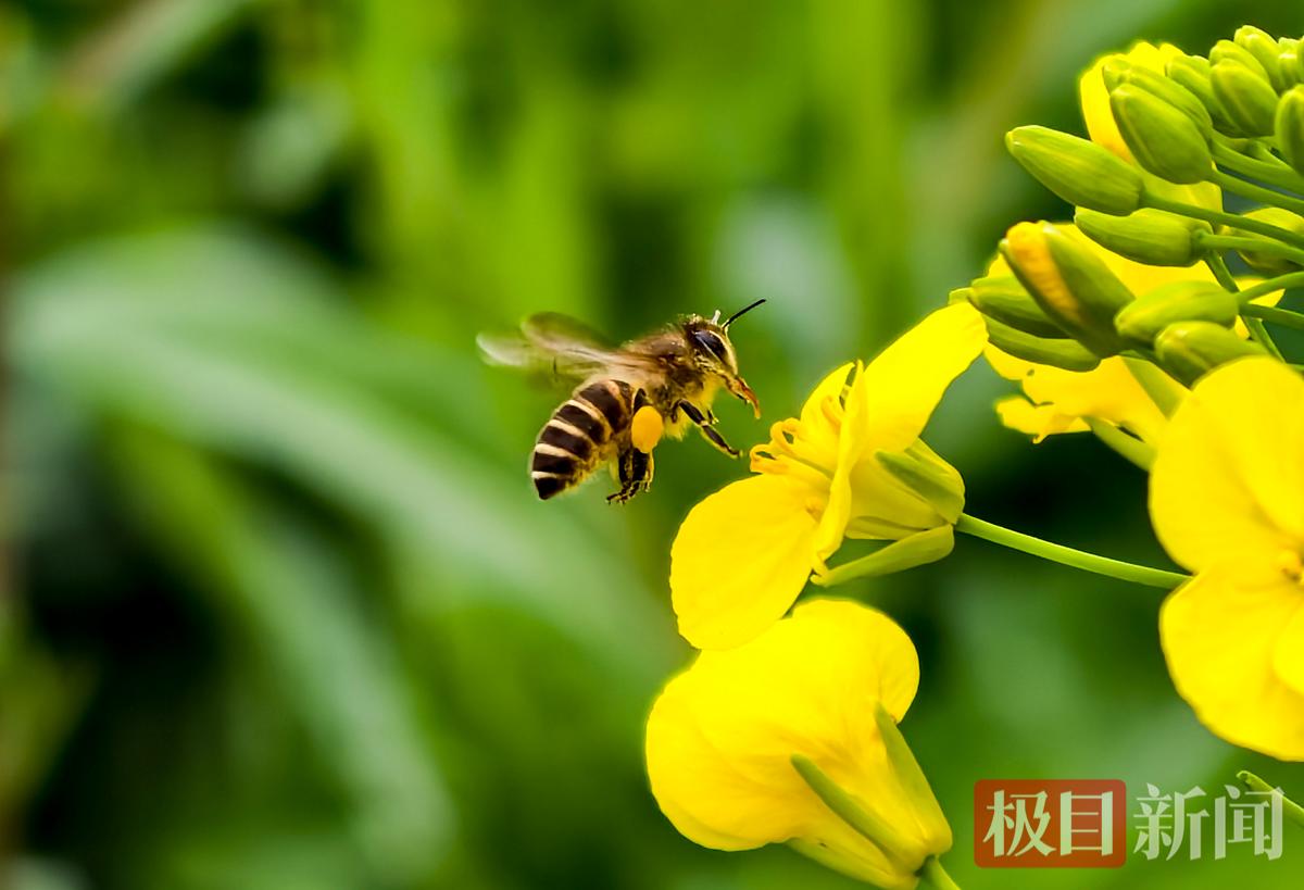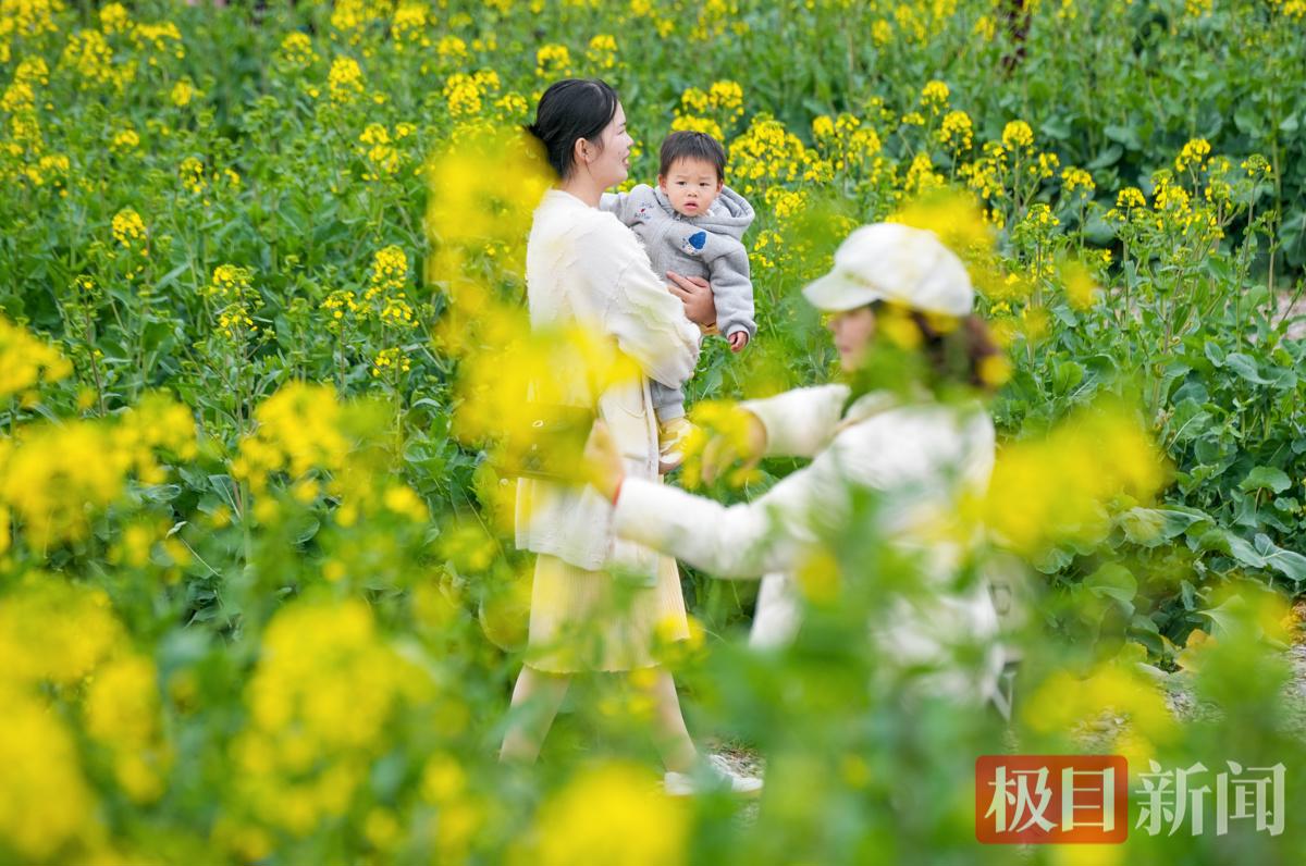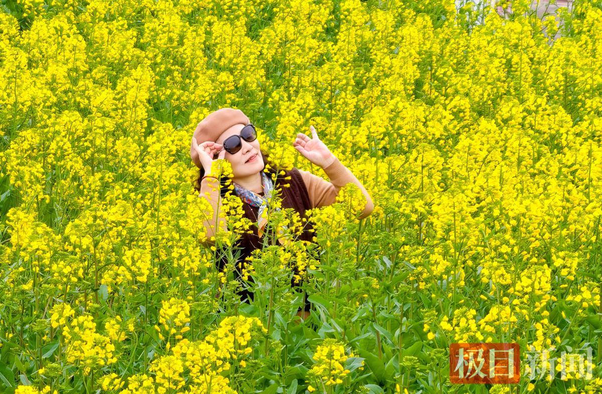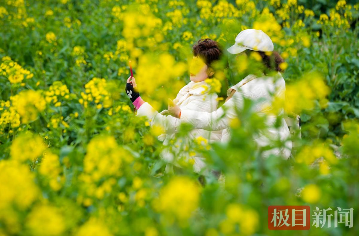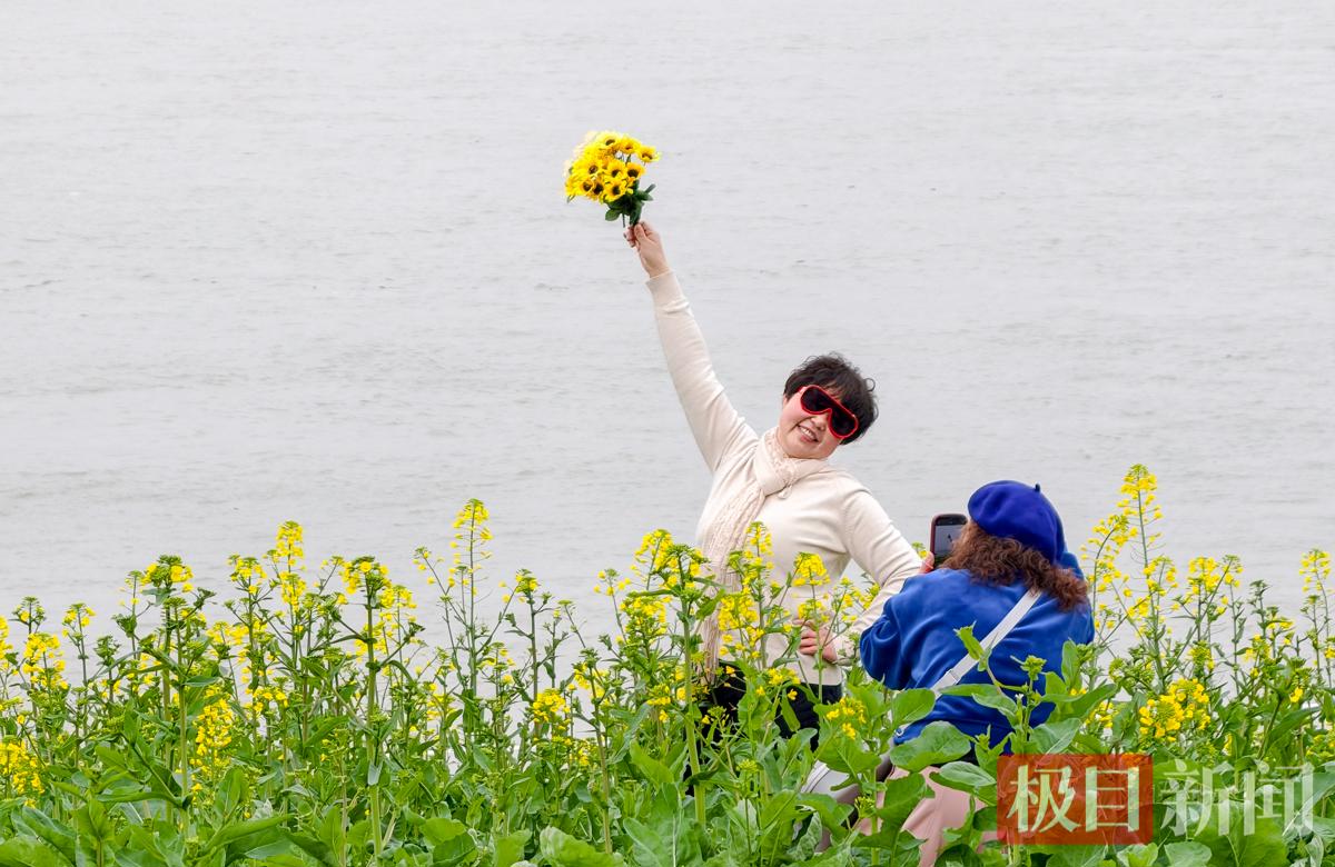 当天中午,新闻记者看到,现场的油菜花已绽放约一半,金黄的花簇与翠绿的叶子错落有致,在微风中轻轻摇曳,宛如绿色的海洋泛起层层金色的涟漪,让都市江滩尽显田园诗意。