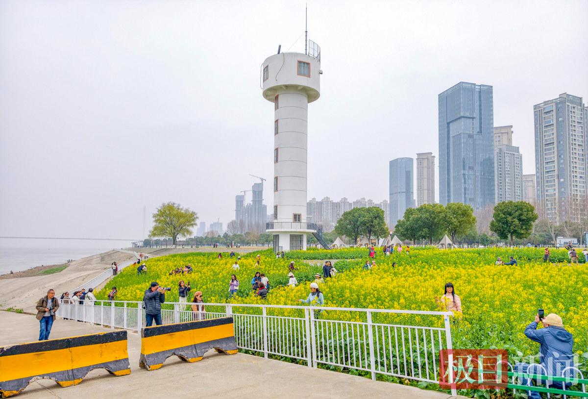 3月6日,春风拂面,武昌江滩铁机段灯塔下的油菜花悄然绽放,金黄花海与纯白灯塔相映成趣,勾勒出如童话般的春日盛景,吸引了大批市民游客前来踏青打卡。