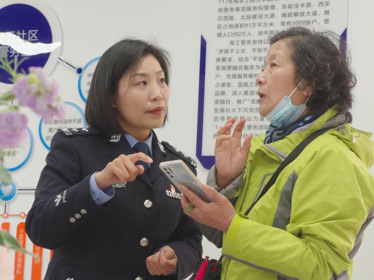 在海工社区,像张奶奶这样的老人还有很多,邵楠每隔一段时间便上门看望,用贴心的陪伴、细致的守护,做社区老人最亲的“警察闺女”,把藏蓝温情揉进街巷的烟火日常里。