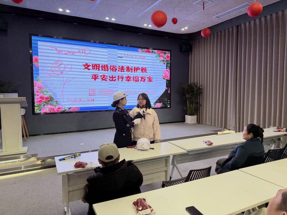 此次活动创新打造“交通+法治+婚俗”三维宣传模式,将交通安全、婚姻家庭权益保护、文明婚俗等知识有机融合,一堂课覆盖多重知识。现场还设置联合答疑环节,女警、法官、社工面对面答疑解惑,让普法更有温度、更贴民心。