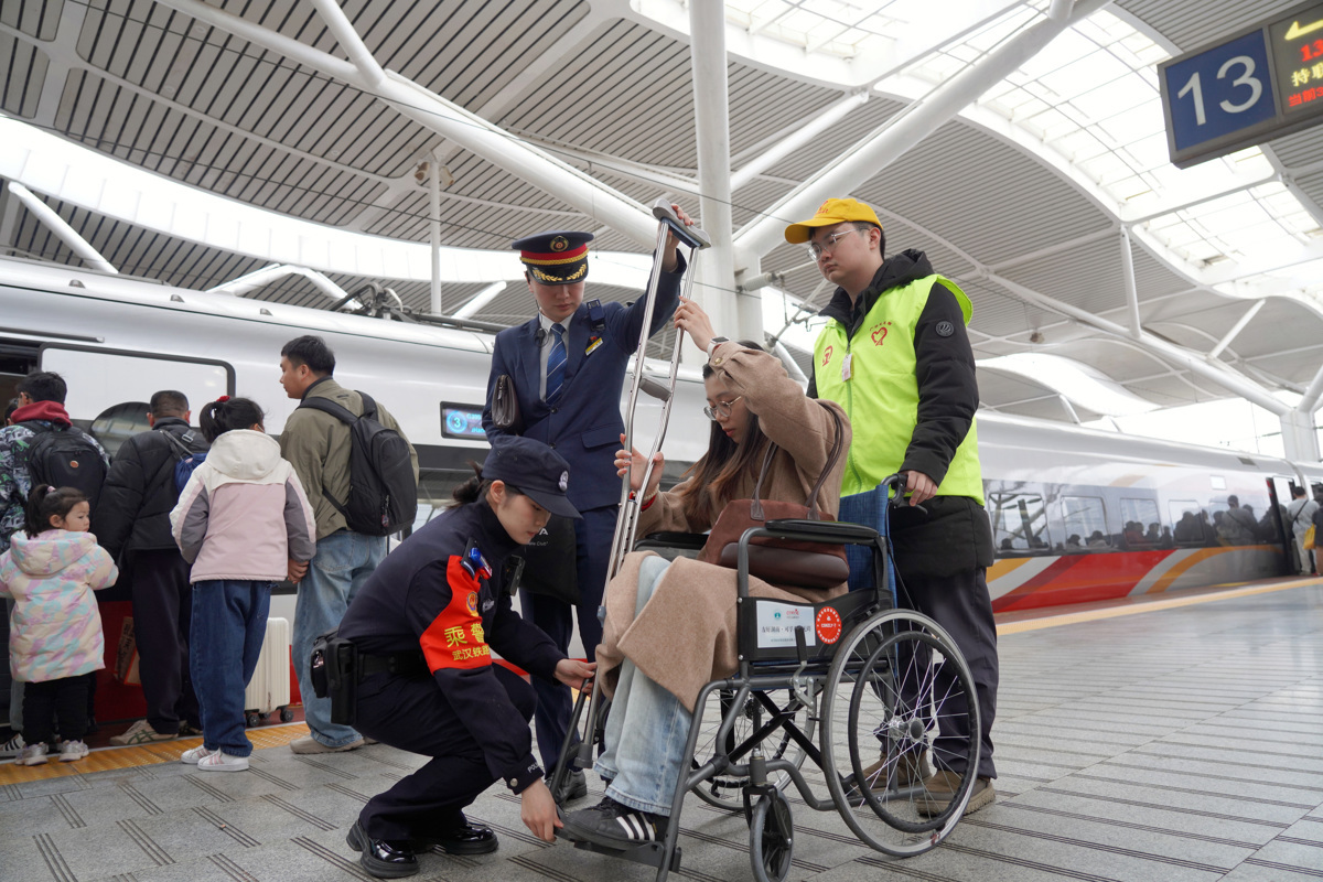 “材料带上,执法记录仪带上,爱心贴、便民联系卡也都在,还有我的‘秘密武器’,齐了!”“江城”女子乘警队队员李若芸早早来到备勤室,仔细检查、整理自己的出乘箱。她轻声核对,确认无误后,拎起箱子走向武汉火车站,开启新年首趟出乘任务。