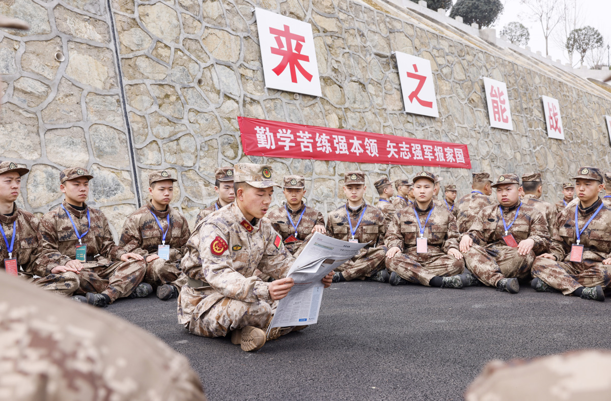 近日,湖北省随州军分区结合预定新兵役前教育训练,组织新兵学习全国“两会”精神,引导青年认清使命责任、端正入伍动机,以昂扬姿态投身军营。