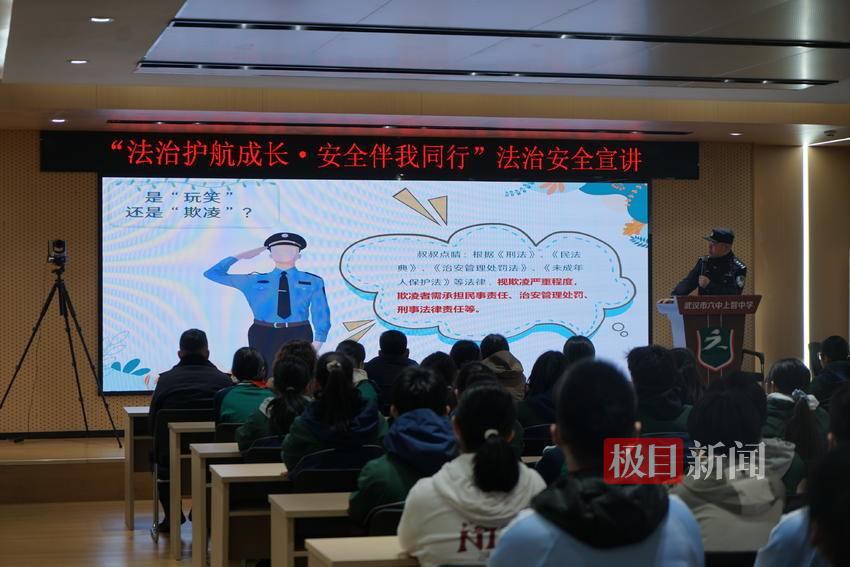 “如果被人推搡、辱骂甚至殴打,我们该怎么办?”讲台上的民警抛出这个问题,同学们纷纷举手回答。为提升同学们安全防范意识和自我保护能力,营造安全、文明、和谐的校园环境,3月6日下午,武汉市公安局江岸区分局与武汉市六中上智中学联合开展“法治护航成长・安全伴我同行”安全宣讲活动。在该校电子教室内,民警通过趣味问答、情景互动、装备展示等新颖形式,讲解了防范校园欺凌、防诈骗等安全知识,并演示了如何处置突发事件。