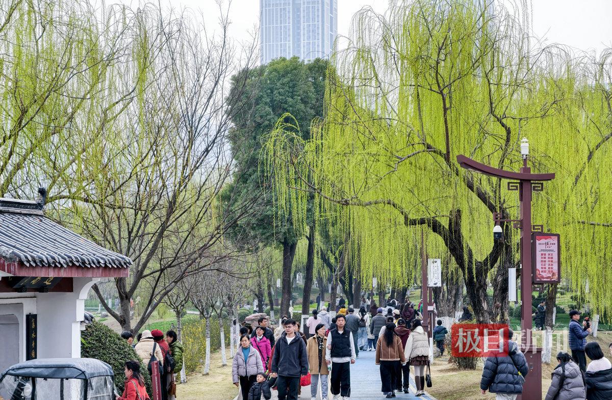 当日下午,新闻记者在公园内看到,处处洋溢着盎然春意。玉兰、早樱竞相绽放,粉白相间的花朵缀满枝头,清新雅致;人工湖沿岸,垂柳抽出嫩绿新芽,随风轻拂,勾勒出柔美的春日轮廓。