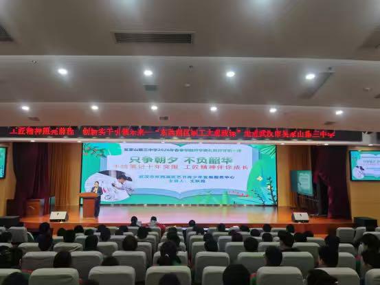3月4日,武汉市东西湖区总工会将职工大思政课送进武汉市吴家山第三中学,特邀荆楚工匠、该校校友王秋霞倾情开讲,以“工匠精神照亮前程 创新实干引领未来”为主题,为全校师生带来一堂鲜活生动的“开学第一课”,让工匠精神蔚然成风,让创新精神在师生心间落地生根、拔节生长。
