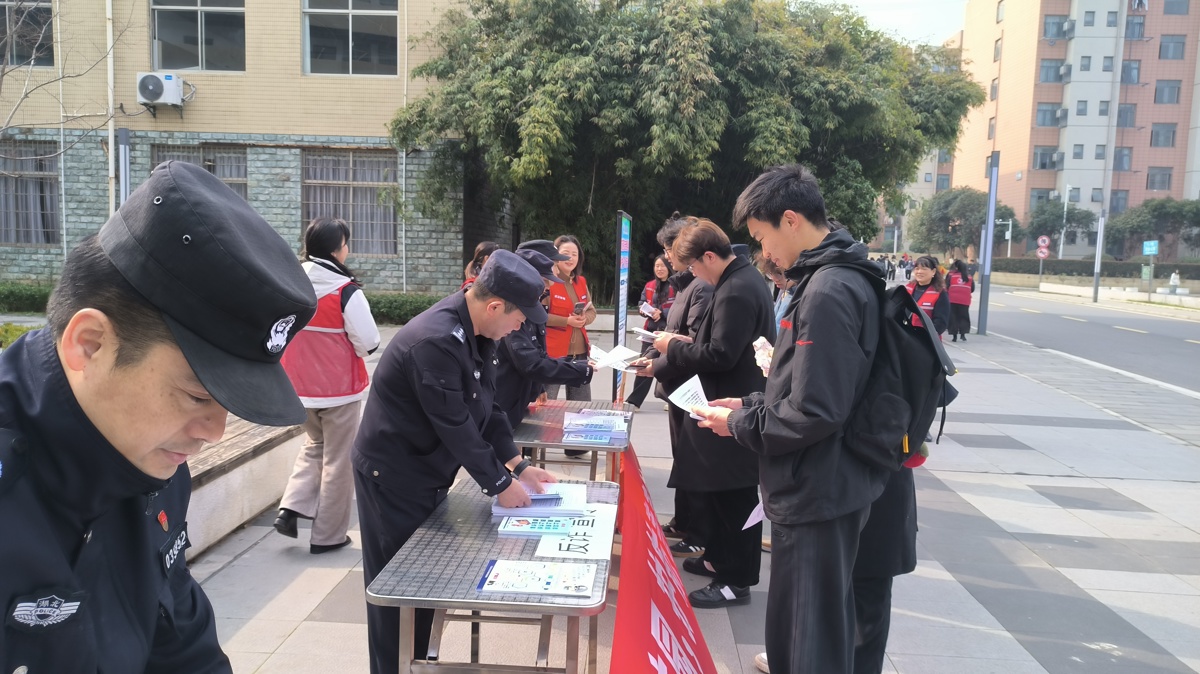 “不轻信陌生信息,不随意透露个人信息,遇到可疑情况要及时拨打110报警。”3月3日,黄陂区分局腾龙派出所社区民警朱万春来到康礼高级中学,开展法治教育及反诈宣传活动。正值放学时分,校门口的宣传点围满了接孩子的家长,他一边发放宣传资料,一边剖析“冒充老师收费”“虚假培训诈骗”等与学生家长关联紧密的诈骗套路,反复叮嘱家长们提高警惕。