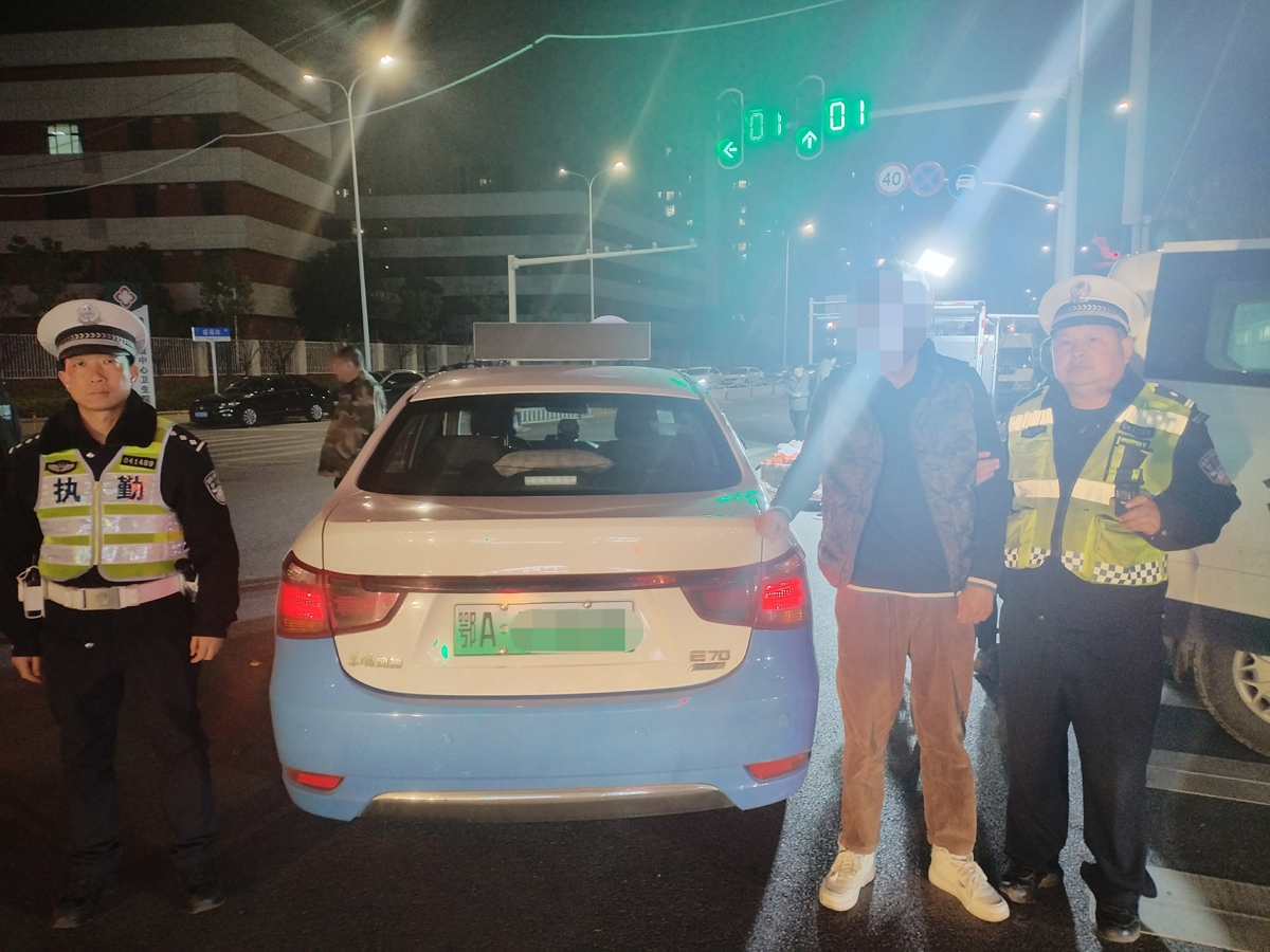 3月4日下午2时许,黄某和朋友聚餐期间,喝了两瓶啤酒。到了晚上9点,黄某自觉“很清醒”,便驾驶着自己的营运轿车,准备回家。车辆途径红寨路时,遇到了武汉黄陂交警七中队民辅警在此查酒驾。“请吹气。”交警递上酒精快测棒,黄某配合一吹,快测棒瞬间亮起。