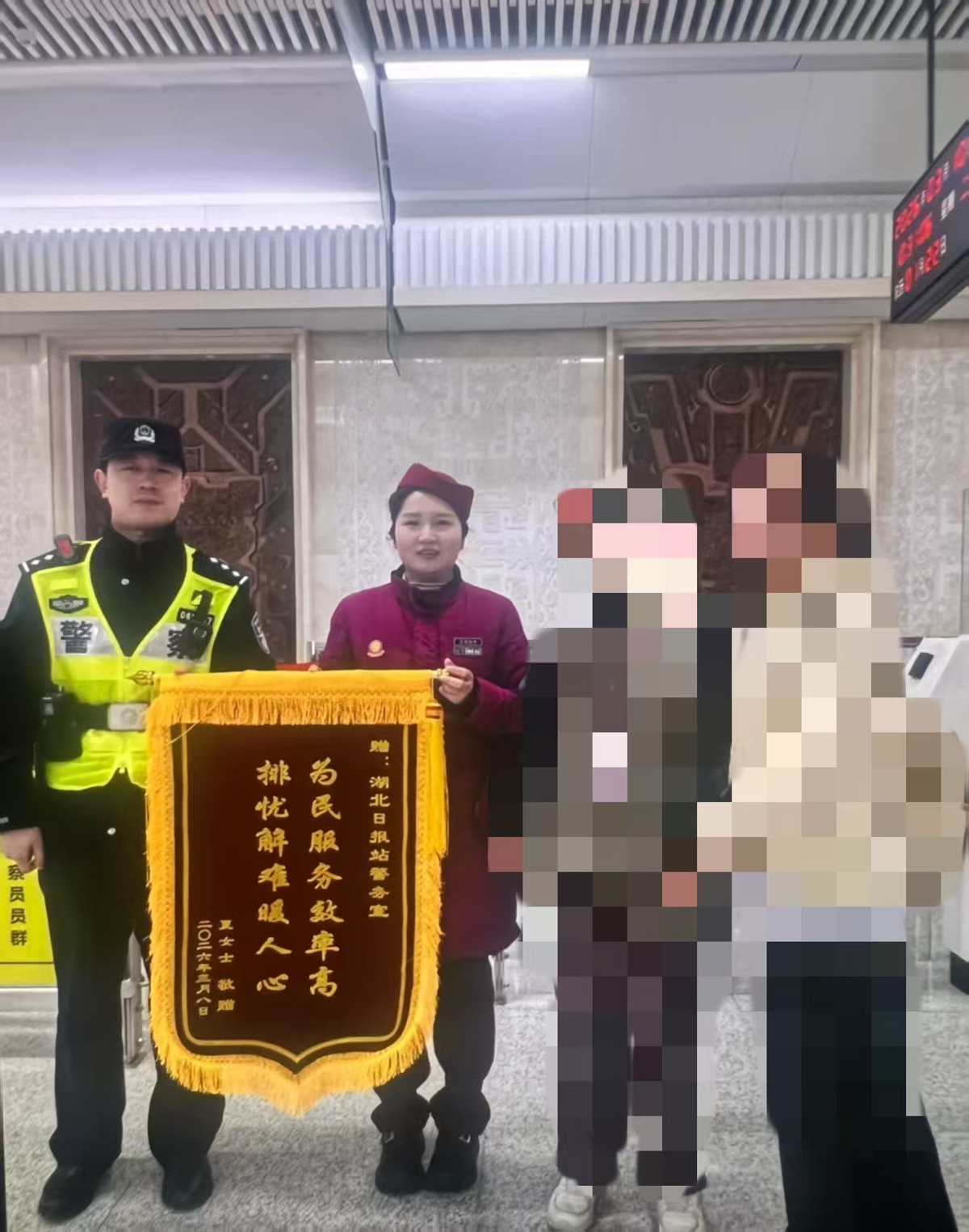3月10日10时许,走失女子及其姑妈专程来到省博站警务室,送上印有“为民服务效率高,排忧解难暖人心”的锦旗,对轨道民警、辅警及站务人员迅速联动、快速响应、用心守护群众平安的工作精神再次表达诚挚谢意。