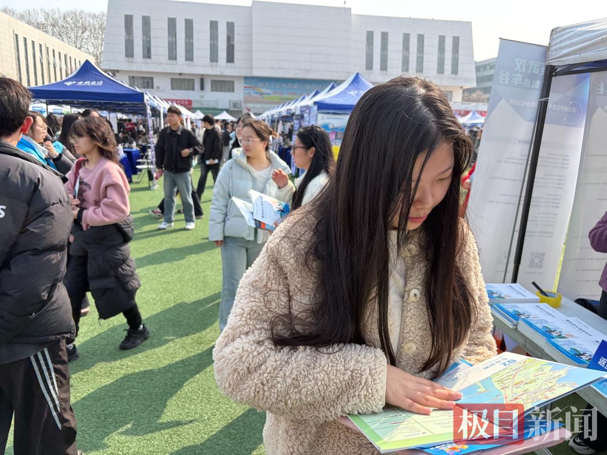 湖北工业大学的史同学今年毕业,她正在招聘会现场仔细阅读《武汉经开区“学子聚汉”校招手册》,她告诉新闻记者,武汉经开区提供的园区产业聚集,提供的医疗、居住条件让生活很方便。