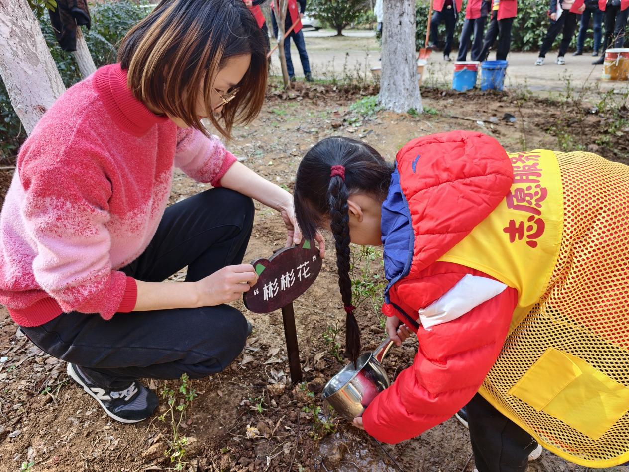 小朋友们也拎着小水桶穿梭其间,成了最萌的“护绿使者”。“小树多喝水,快快长大啊!”孩子们将清水缓缓倒入树根中。清凉的水流渗入泥土,也在孩子们心中种下了爱护环境的种子。