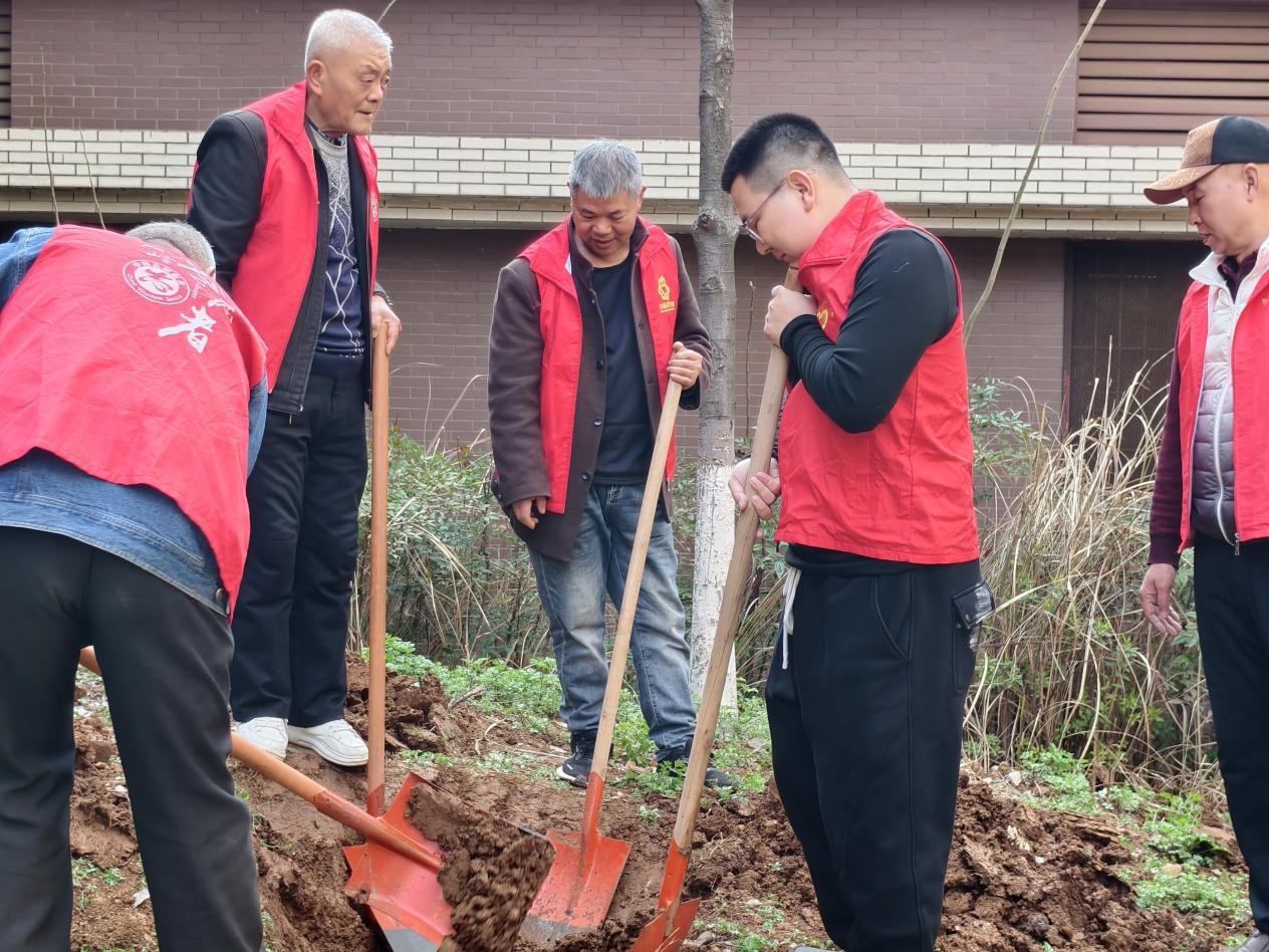 3月11日下午,春意渐浓,武汉东湖高新区左岭街祥龙社区“小龙人”同心花园内呈现出一派繁忙而温馨的劳动景象。祥龙社区联合左开投公司、“小龙人”志愿服务队和馨苑物业开展了“党建引领聚合力 同心花园焕新颜”植树节主题活动,通过党建+社企共建,为社区环境增添了一抹新绿。