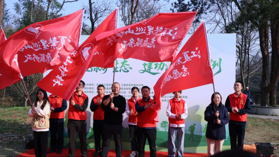 “今天,我们播种绿色,更是在播种希望!”中建三局基建投公司的青年代表登台发出倡议,号召全区青年投身生态文明建设。随后,该区青年志愿者协会秘书长宣读“江夏繁星巡山护林小队”成员名单。这支由各单位青年组成的小队,将承担日常巡山护林责任,让“一时植树”变成“常态护绿”。最燃的授旗环节,团区委和区园林和林业局相关领导为“护林小队”青年代表授旗。