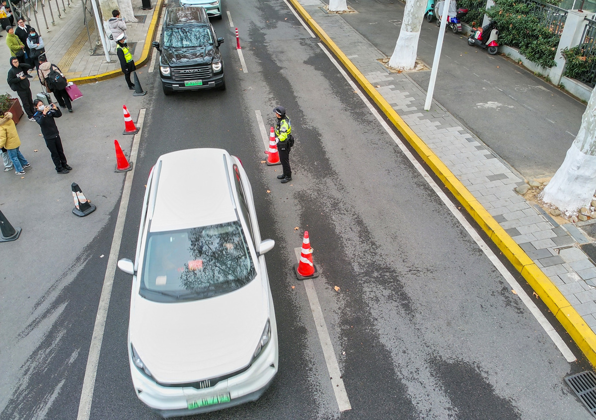 东湖交警结合景区交通规律,确保空地警力全天候在岗。在广场北路、鲁磨路、植物园路等易堵节点,无人机空中广播配合地面警力疏导,快速缓解通行压力。