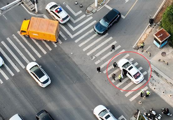 3月9日18时许,正在大队指挥室值班的民警张天能,通过道路监控发现八一路和揽翠路发生一起车辆追尾事故。正值车流高峰,双向两车道的机动车道很快出现滞留。他立即调度无人机,1分钟内飞抵现场。辅警陈需莹通过无人机搭载的高音喇叭喊话,引导事故双方迅速将车辆移至前方路口,恢复主路通行。同时,现场画面也同步推送至就近快骑队员和事故处理警力,处置警力2分钟内到场接手。从事故发生到处理完毕、道路恢复正常通行,全程仅用6分钟,避免了拥堵蔓延。