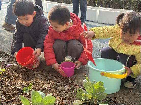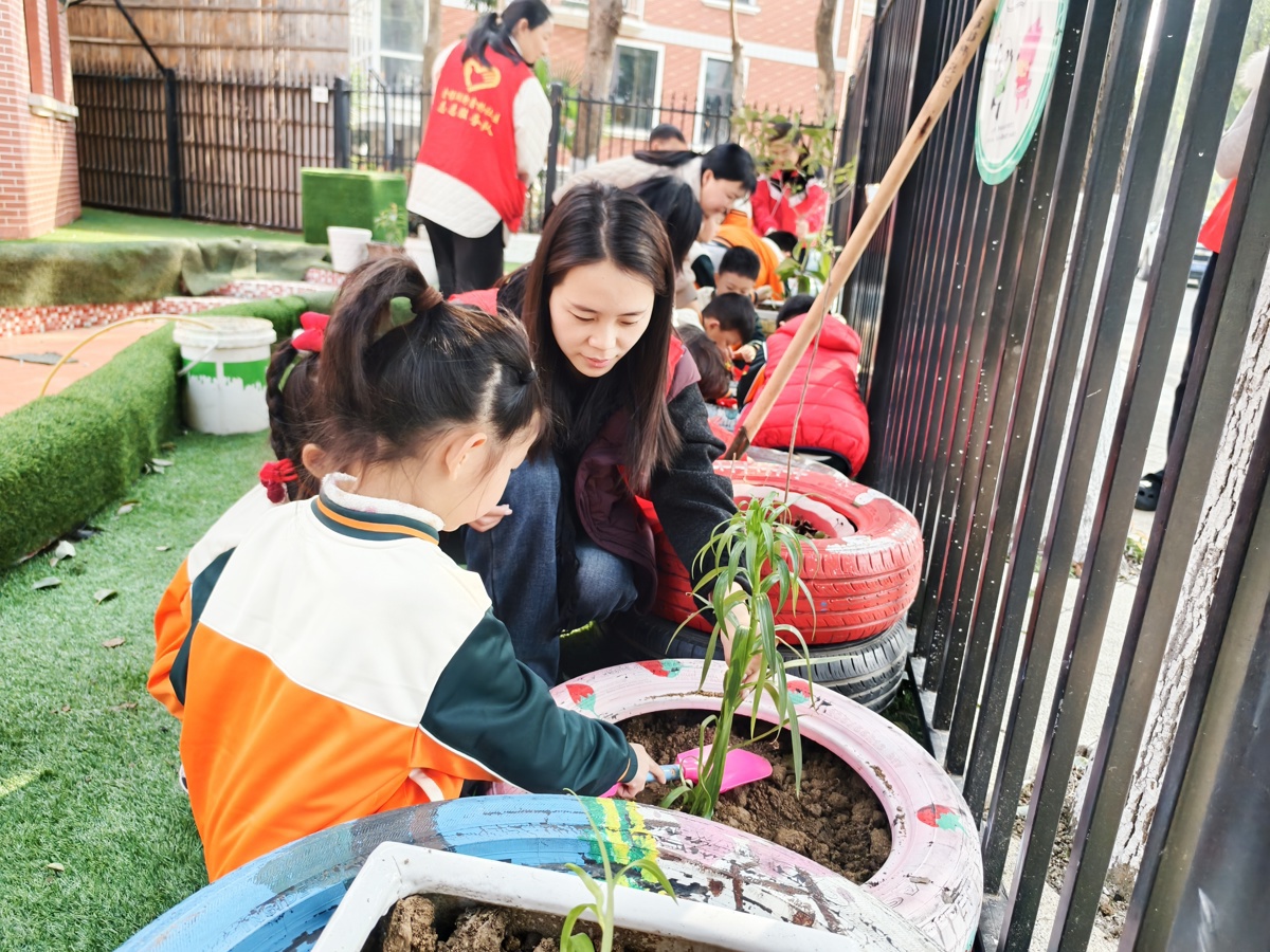 同日上午,鑫桥社区联合东西湖区彩虹树幼儿园、湖北省颉木景餐饮管理有限公司,在幼儿园操场举办“轮胎育新绿 童心植春光”活动。社区志愿者提前将泥土装入废旧轮胎作为种植容器,孩子们在指导下将树苗栽入轮胎花盆中,完成填土、浇水等步骤,了解废旧物品再利用的环保理念。