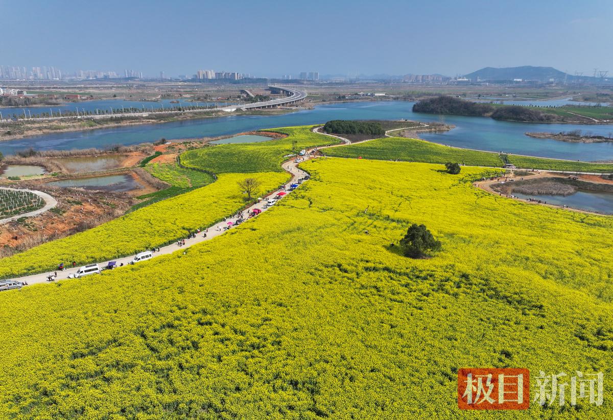 眼前这片美不胜收的花海,数年前这里杂草丛生、垃圾散落,与状元湖的生态禀赋不相匹配,成为周边居民的“心头忧”。新团村党支部书记、村委会主任曾凡涛向新闻记者介绍,在武汉经开区军山街道党工委统筹协调、精准施策下,新团村通过平整土地、筛选花种,最终确定播撒油菜籽,实现了“荒地变景观”的环境提升,用精细化举措让城市“边角料”焕发新生。