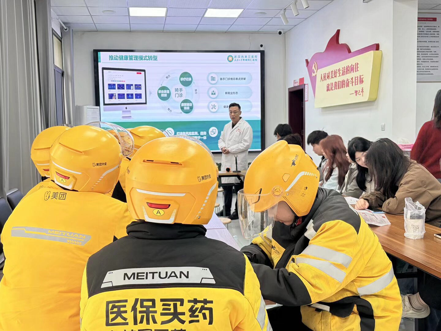 培训中,还特别介绍了武汉市第三医院专为新就业群体开设的“骑手门诊”服务——该门诊提供免挂号费、优先就诊等暖心举措,畅通了户外工作者的就医绿色通道,将专业医疗关怀延伸至日常。