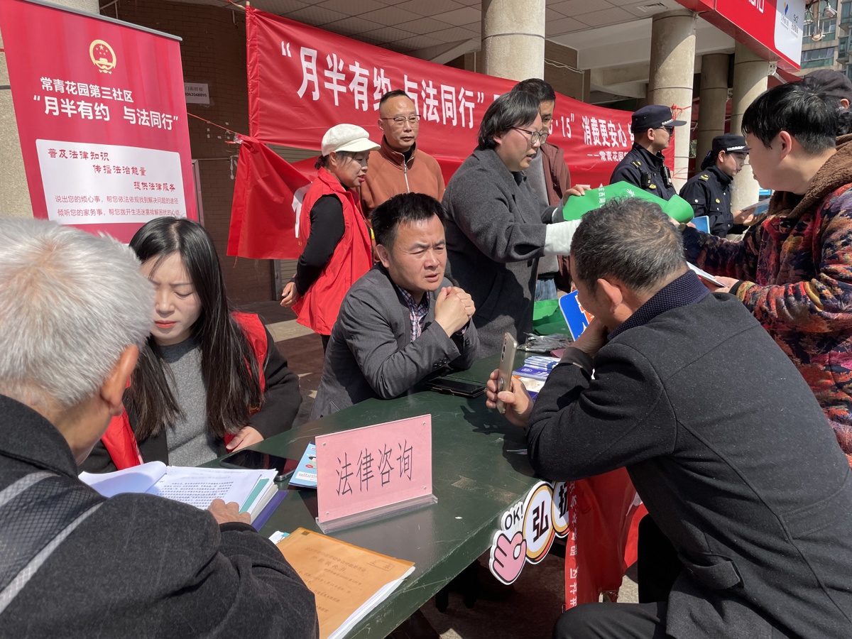 在第44个国际消费者权益日来临之际,3月13日上午,武汉市东西湖区常青花园第三社区将普法宣传与街区治理相结合,在常青花园五小区南门商业街区举办“诚信3.15:让消费者放心,让商户安心”主题普法宣传活动。此次活动由社区联合东西湖区司法局普法与依法治理科、常青花园司法所共同举办。