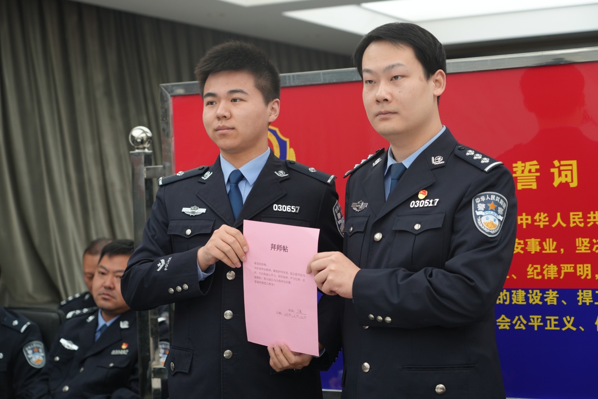 仪式在庄重热烈的氛围中拉开帷幕。活动首先宣读了师徒结对名单,签订师徒责任状,明确“一对一”的带教关系和目标任务。随后,青年民警怀着敬仰与期待,向经验丰富、业绩突出的师傅们呈上“拜师贴”,以传统而庄重的方式,表达虚心学习、砥砺奋进的决心。