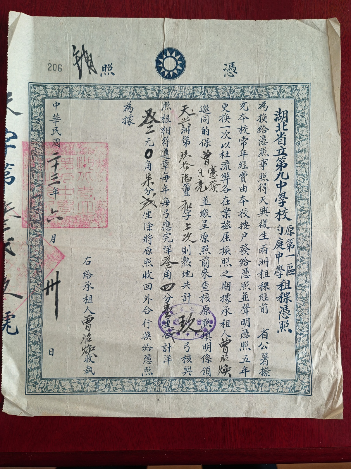 一份跨越民国时期的租稞凭照,几纸写满战时办学艰辛的军方代电,一张承载着先辈募资建校热忱的存折照片……3月13日,武汉市第九中学将一批珍藏多年的特藏档案郑重交到武昌区档案馆工作人员手中。这26件、共计447张的珍贵档案,时间跨度从1934年至1949年,正式入藏武昌区档案馆,成为武昌城市记忆的一部分。