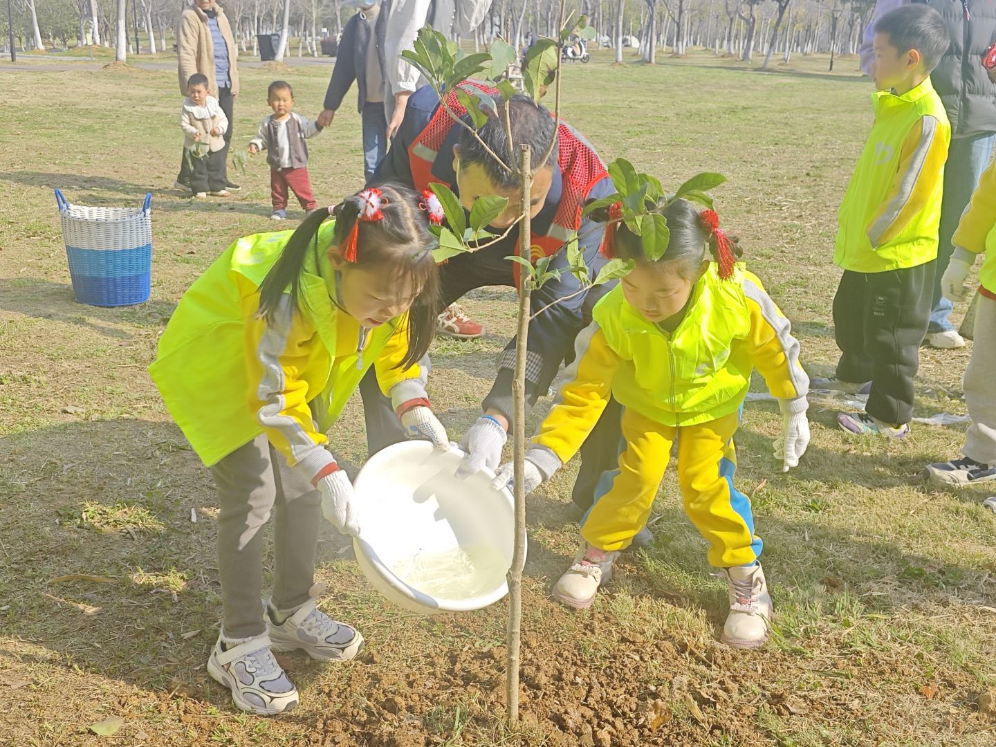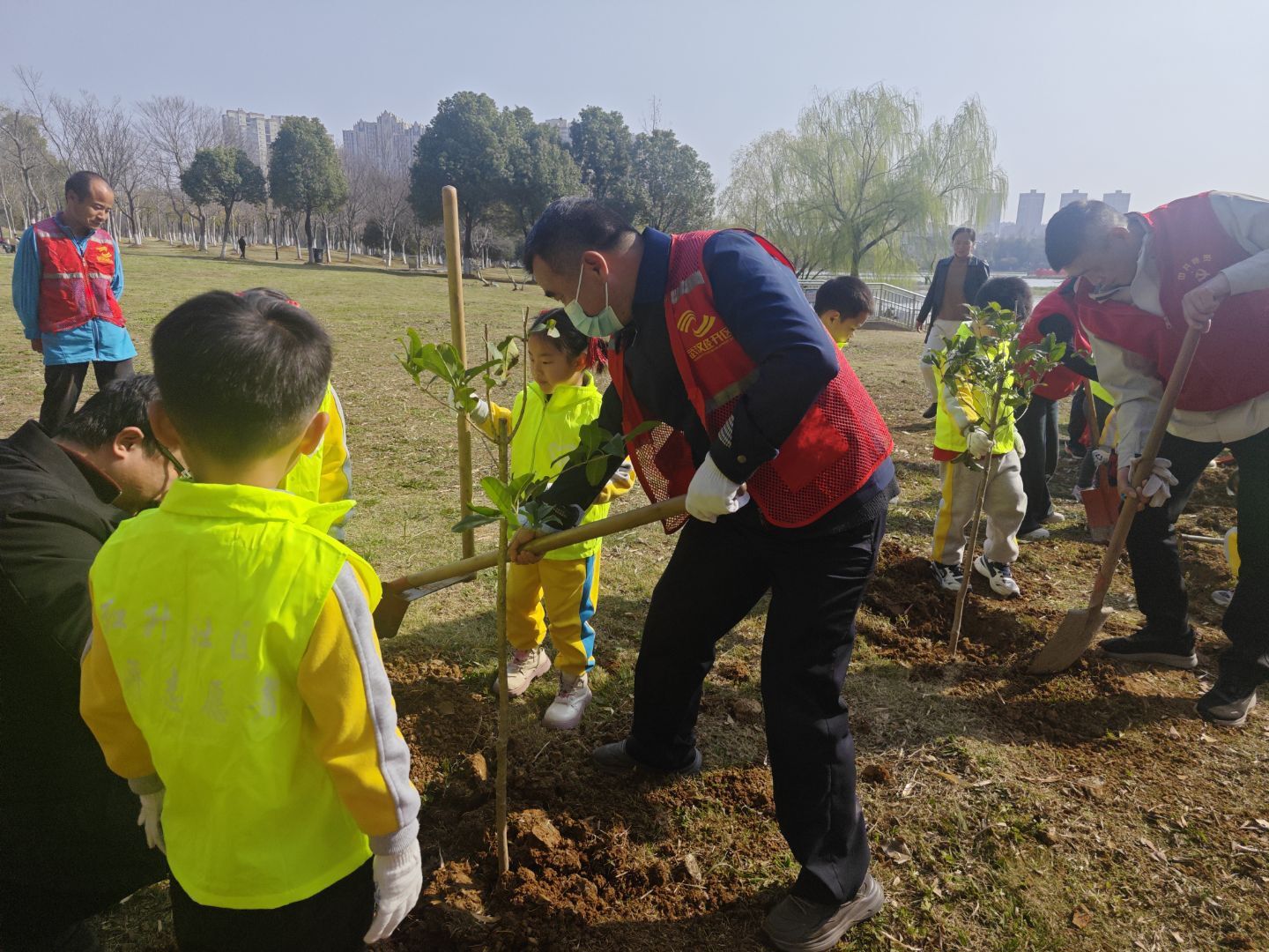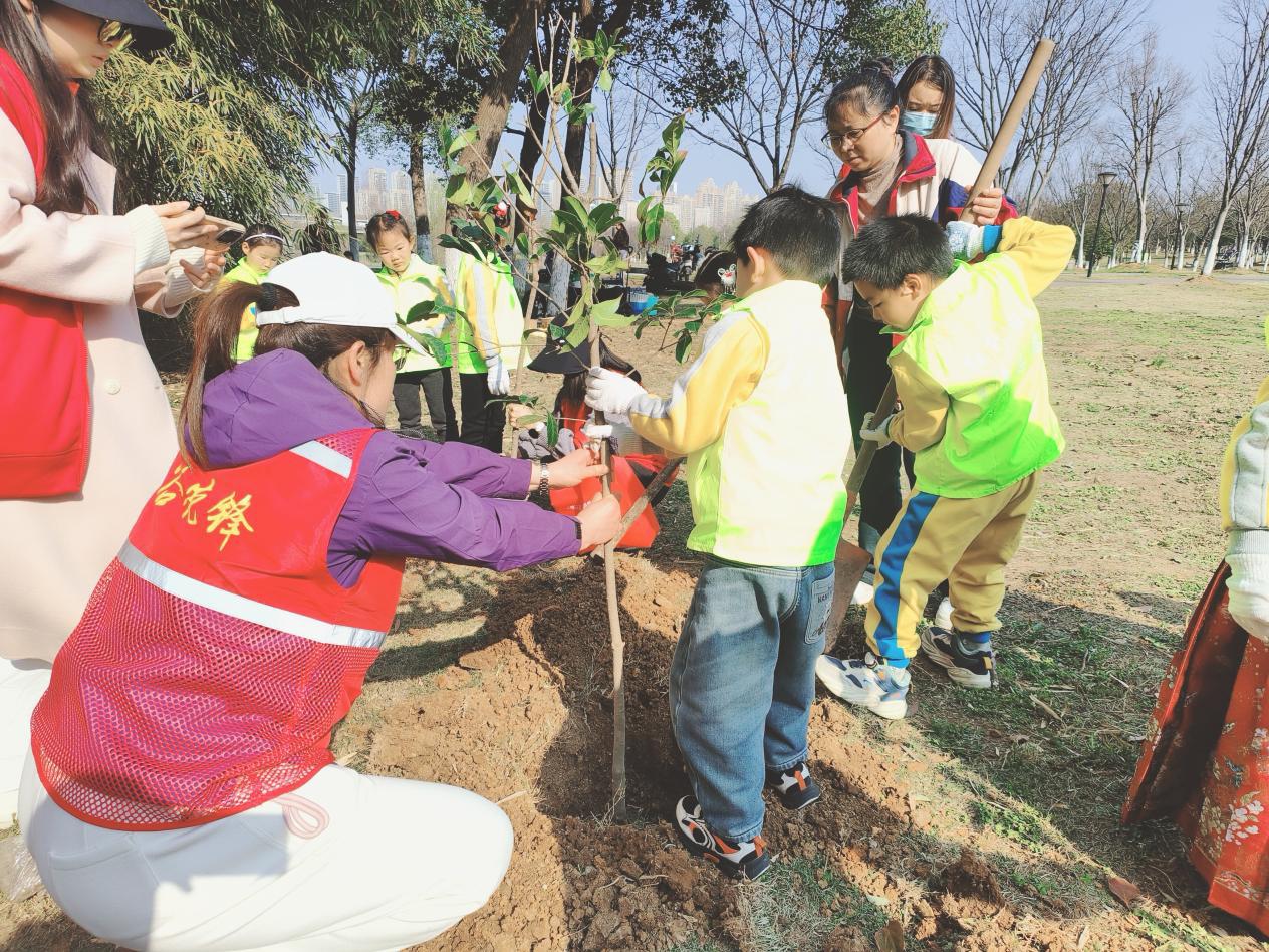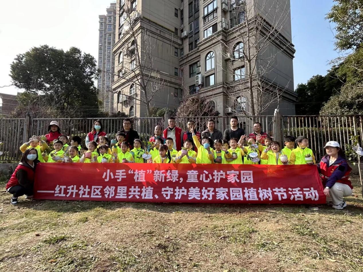 3月12日下午,武汉经开区沌阳街道红升社区联合辖区幼儿园及物业公司,在太子湖畔开展“小手‘植’新绿,童心护家园”邻里共植活动。本次活动以传统节日植树节为契机,将亲子互动、邻里协作与生态环保融为一体,用一场充满童趣的植树行动,为社区文化建设与环境提升写下春日注脚。