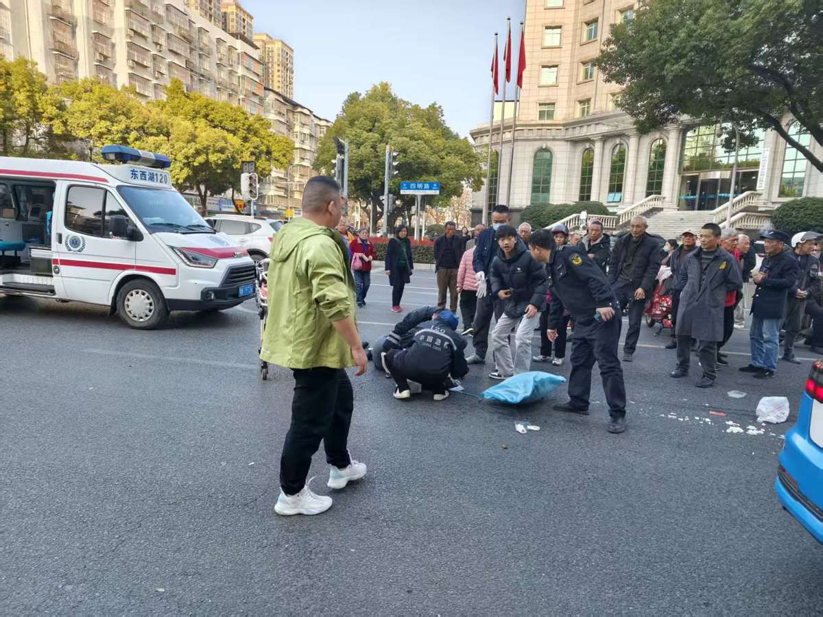 当天下午4时50分左右,当事女子正手提装有米饭、鸭脖等食物的袋子过马路,不幸被驶来的电动车撞倒。正在周边执行巡查任务的吴家山街道综合执法中心队员田螺发现情况后,立即带领队员上前,一边疏导围观人群和过往车辆,确保现场交通秩序和伤者安全,避免发生二次事故,一边密切关注伤者状况。