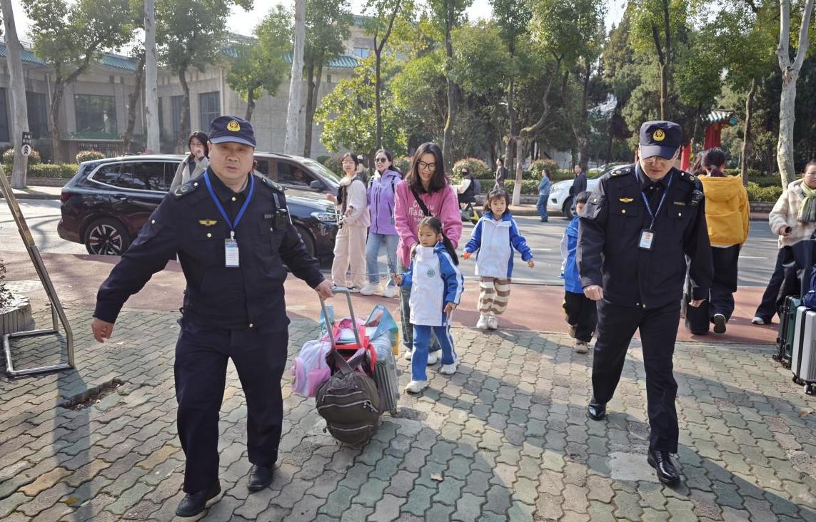一位带着小孩的外地游客神色匆匆,在人群中显得格外焦急。巡逻队员见状,立刻主动上前询问情况。原来,这位游客需要去附近办理一些紧急事务,可带着行李箱和小孩实在不方便,正愁不知如何是好。队员们了解情况后,一边安慰游客不要着急,一边迅速分工,安排专人帮忙看管行李箱,还贴心地将小孩带到安全区域照顾,让游客能够安心地去处理事务。