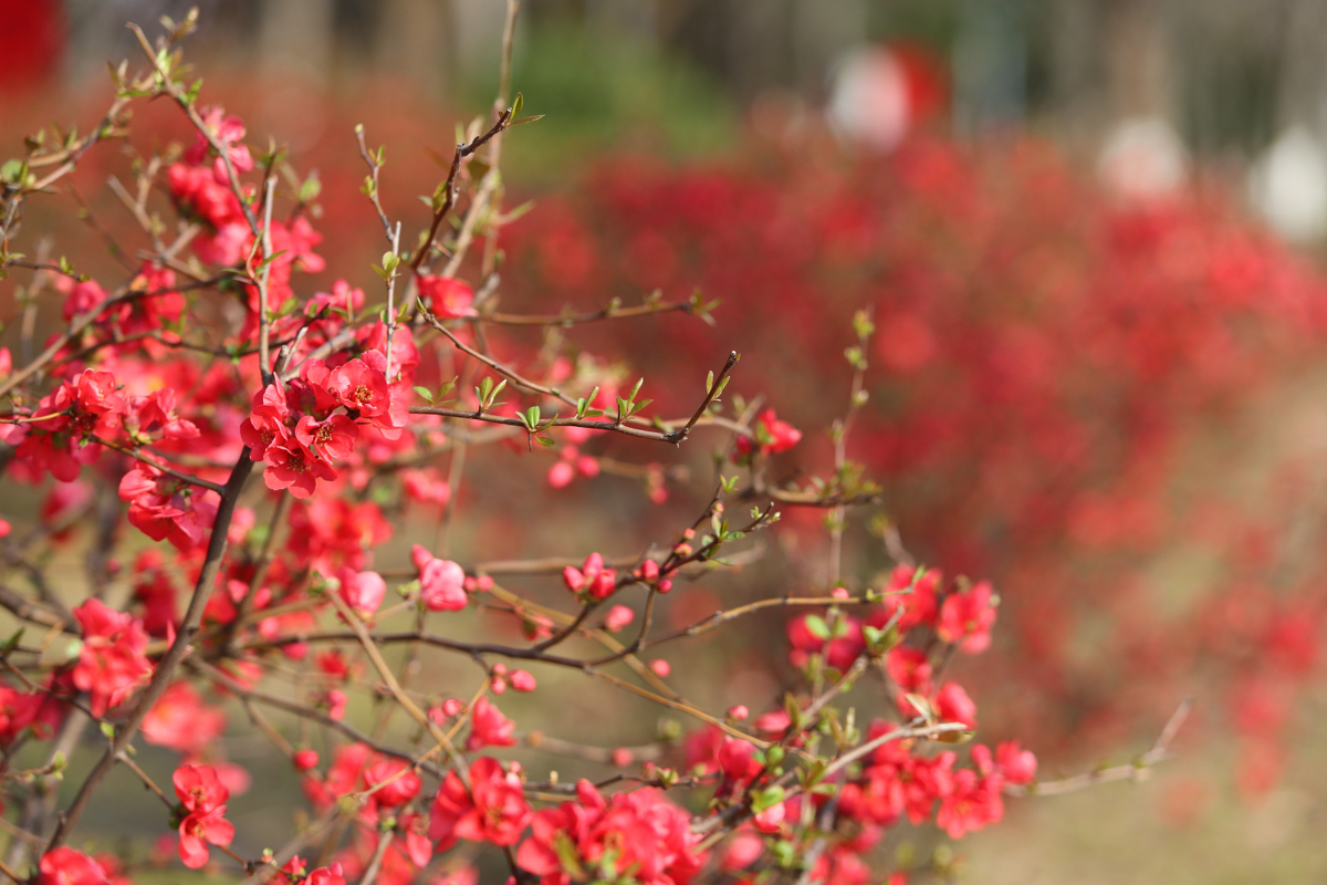 春风催花,南湖幸福湾公园、关山公园内贴梗海棠迎春绽放。嫣红花朵缀满枝头,与碧水清波、茅草亭台相映成趣,勾勒出雅致花境。“偶遇这些海棠,太美了,拍照很出片。”市民艾女士感叹。盛花期吸引众多摄影、汉服爱好者前来创作。而武汉大学校园内,樱花虽未至盛放期,但已有零星早樱绽放,吸引游人驻足期待。