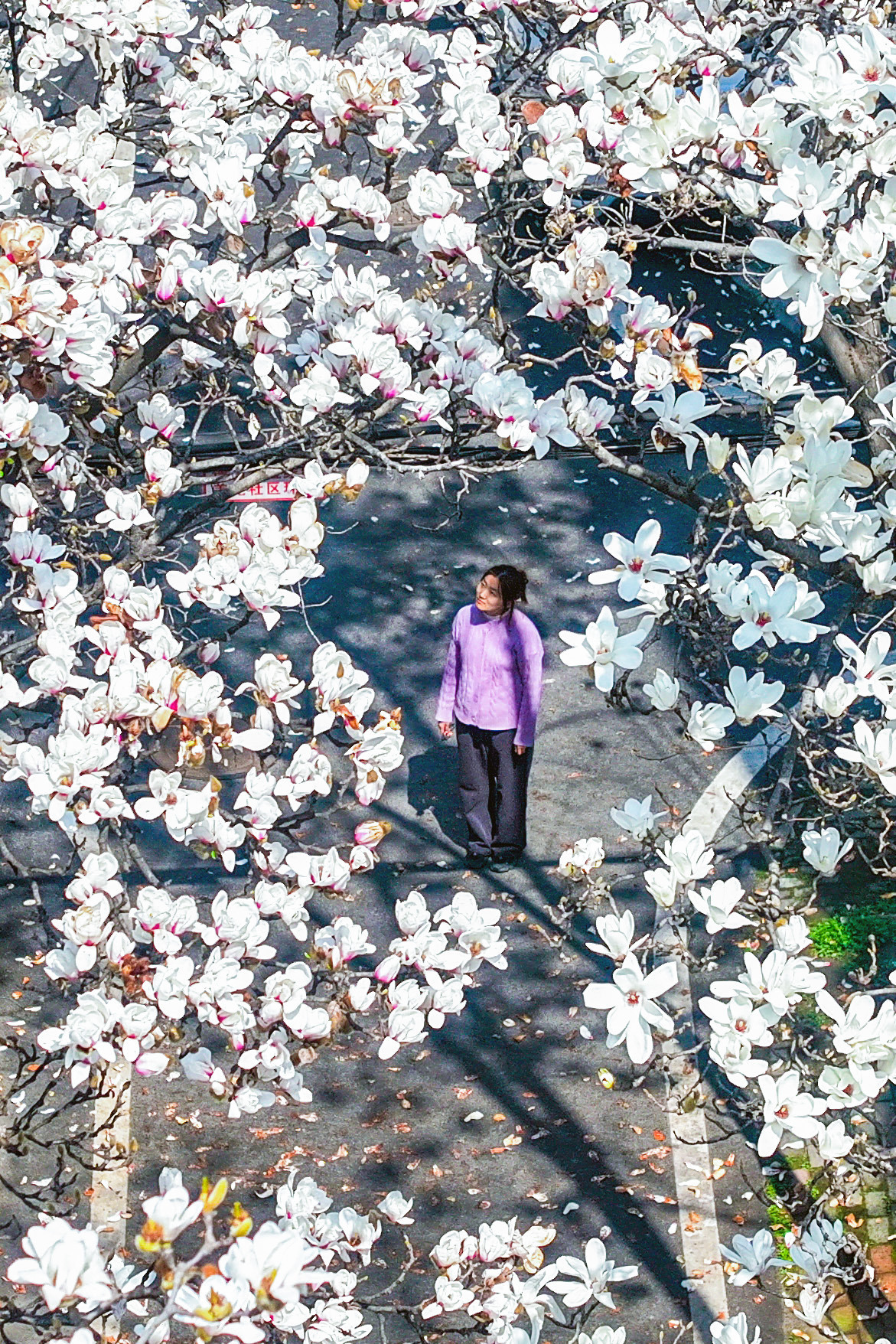 青山区钢花村街道110社区玉兰花迎来盛花期,洁白似雪的花朵缀满枝头,与居民楼、街巷烟火相互映衬,勾勒出一幅清新治愈的春日画卷。因为玉兰成景、花香满城,这里也被居民亲切地称为“玉兰小区”。