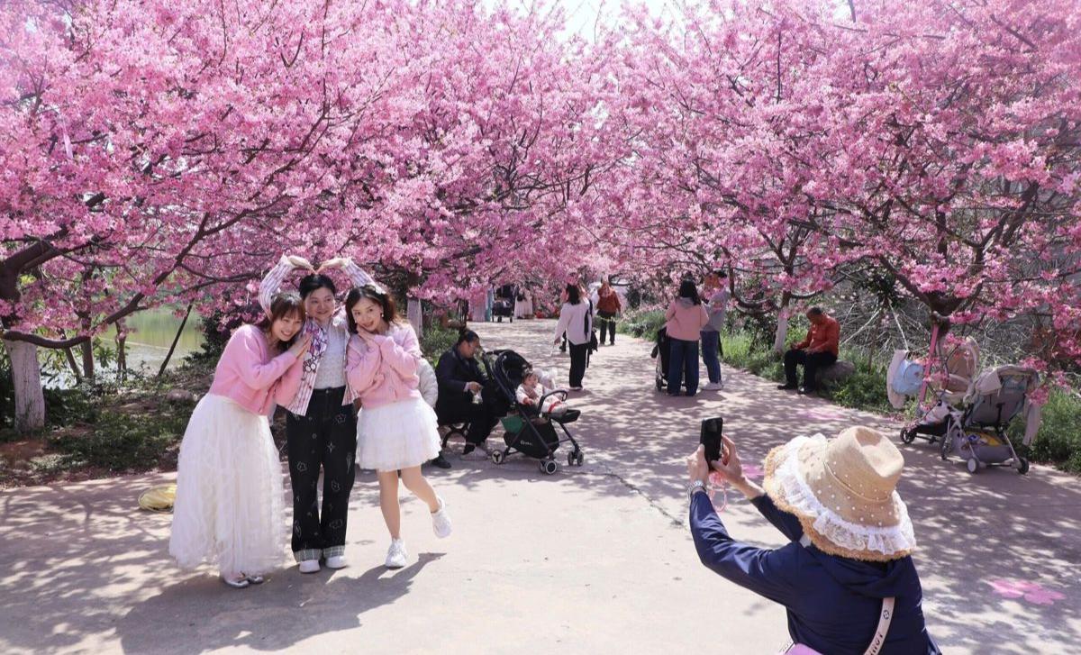 进入3月中旬,江岸区堤角公园不少地方的第一波樱花已经开放,吸引市民赏花打卡。